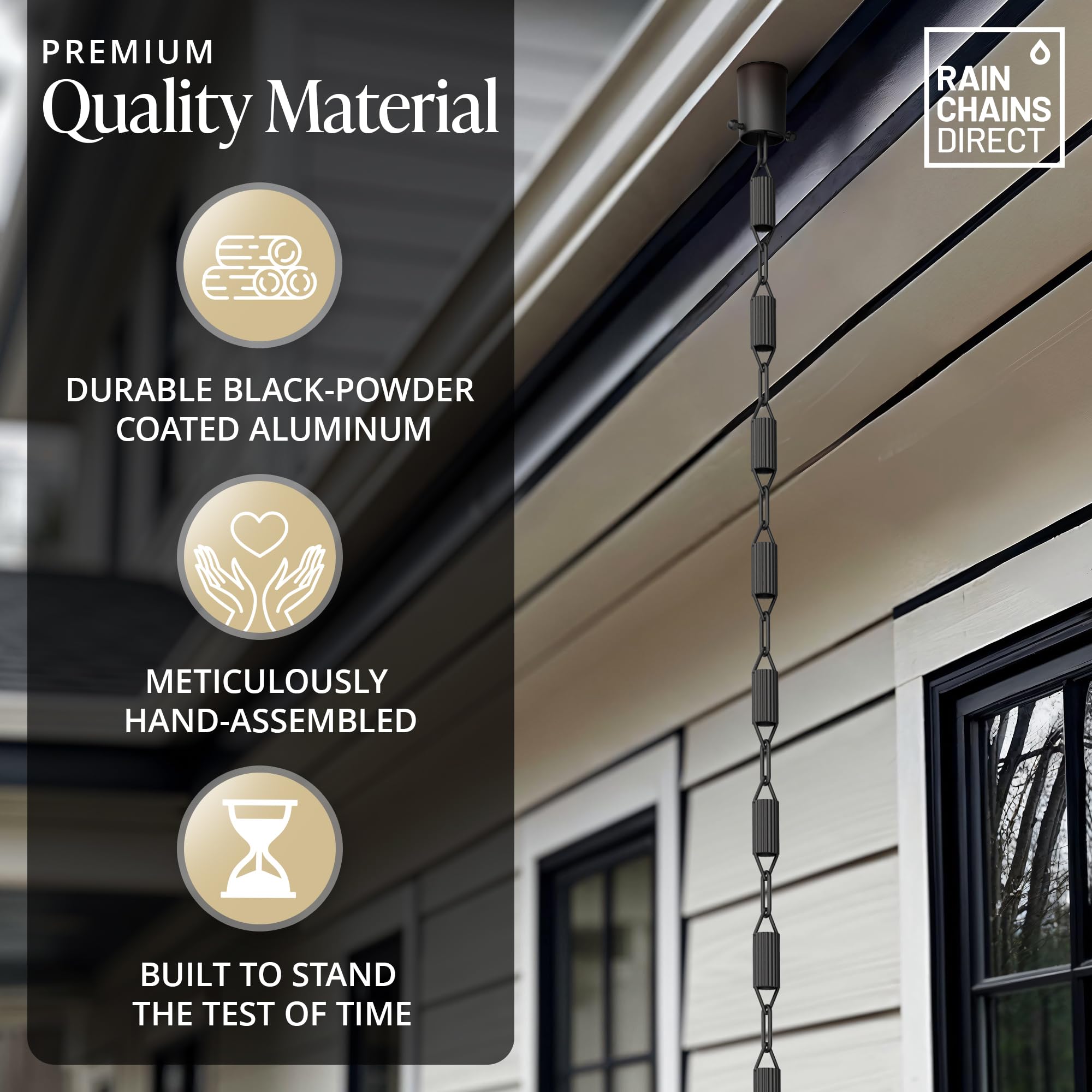 Exceptional Durability - Crafted from milled aluminum and finished with a durable black powder-coating, our rain chains for gutters are meticulously hand-assembled, promising a lifetime of beauty and resilience.