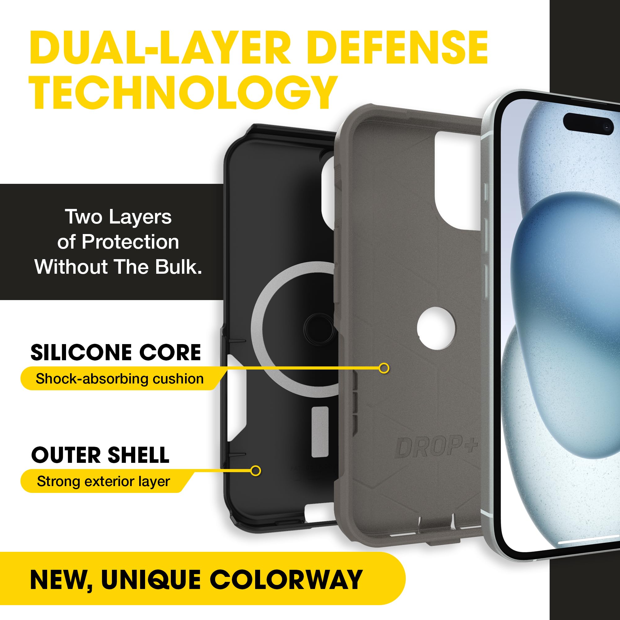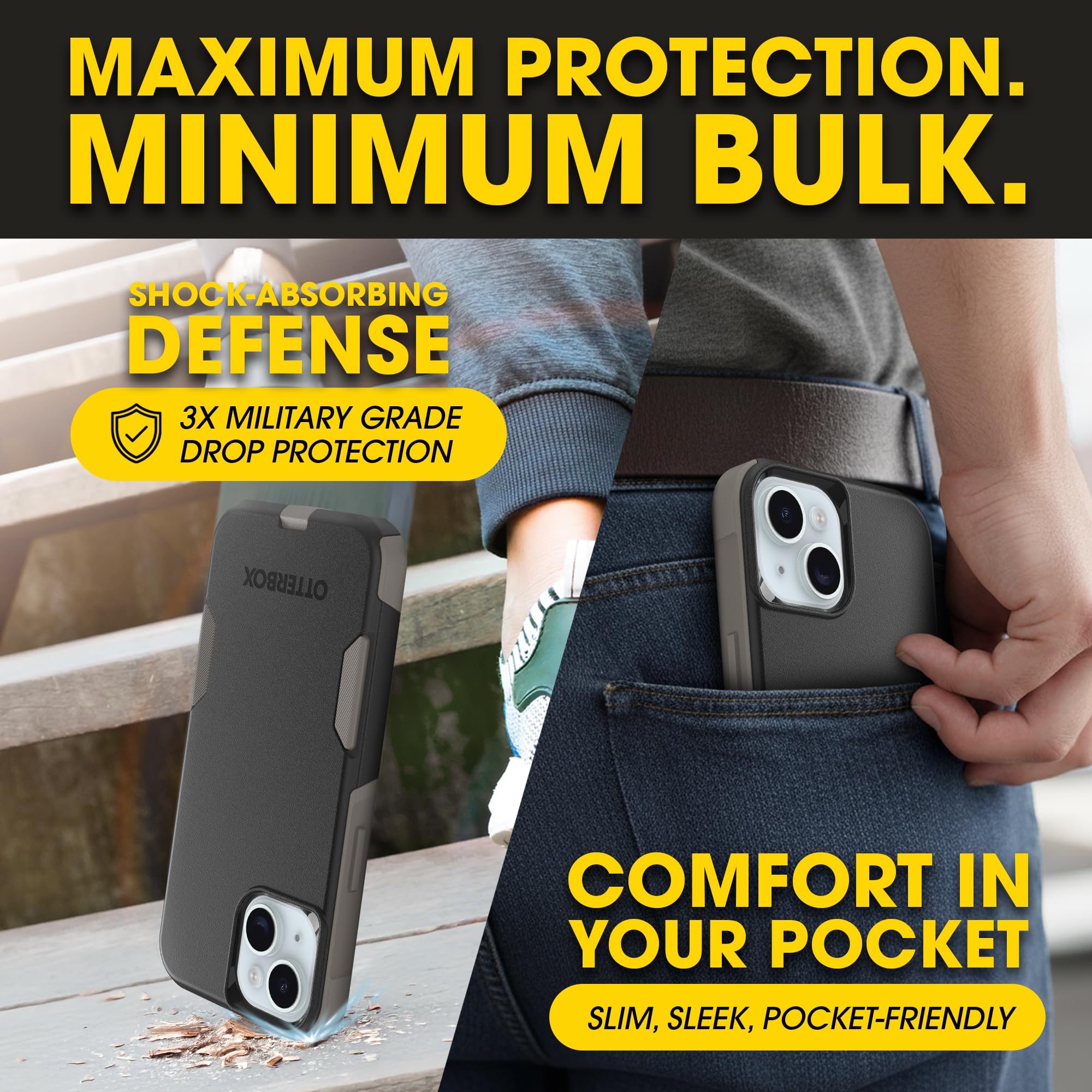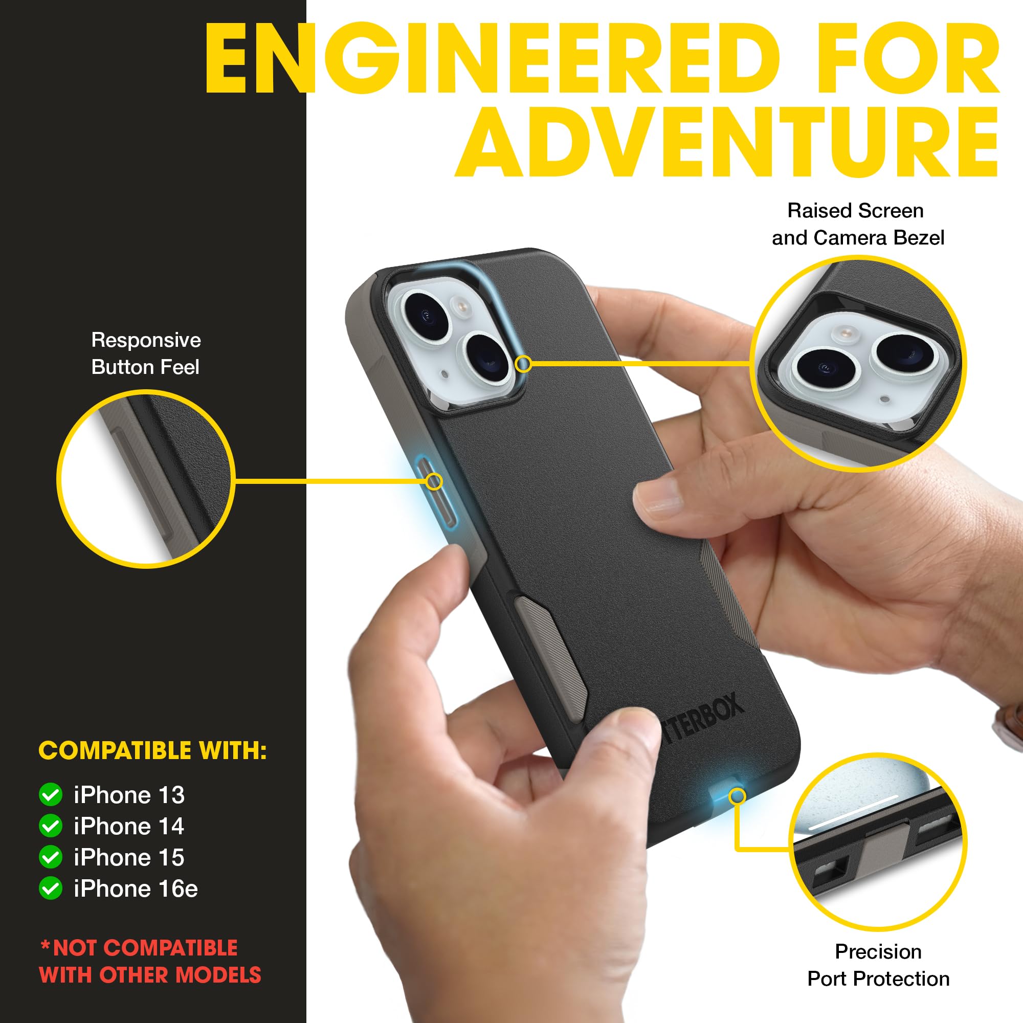Meet Your Everyday Adventure Partner Your iPhone is more than a device — it's your camera, wallet, GPS, and connection to everything that matters. The OtterBox Commuter Series is engineered for people who demand protection without compromise. Why Commuter Stands Out: 3X Military-Grade DROP+ Testing: Survives 78 drops from 4 feet at multiple angles Dual-Layer Defense System: Shock-absorbing inner silicone paired with a hard polycarbonate outer shell Precision Port Covers: Designed to help keep out dust, dirt, and moisture while opening smoothly with repeated use Wireless Charging Compatible: Works with wireless chargers (no magnets in case) Perfect For: Urban professionals who pocket-carry Parents balancing life and devices Anyone who drops their phone regularly People tired of choosing between protection and style Compatible with iPhone 13 iPhone 14 iPhone 15 iPhone 16e Choose OtterBox. Choose confidence. Choose protection that works when it matters most.