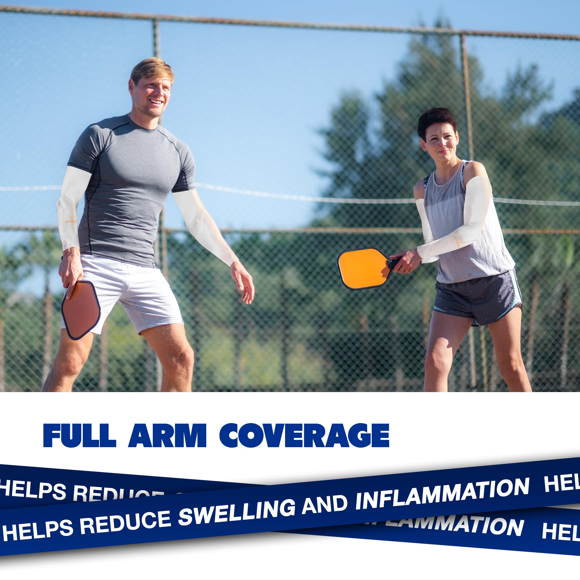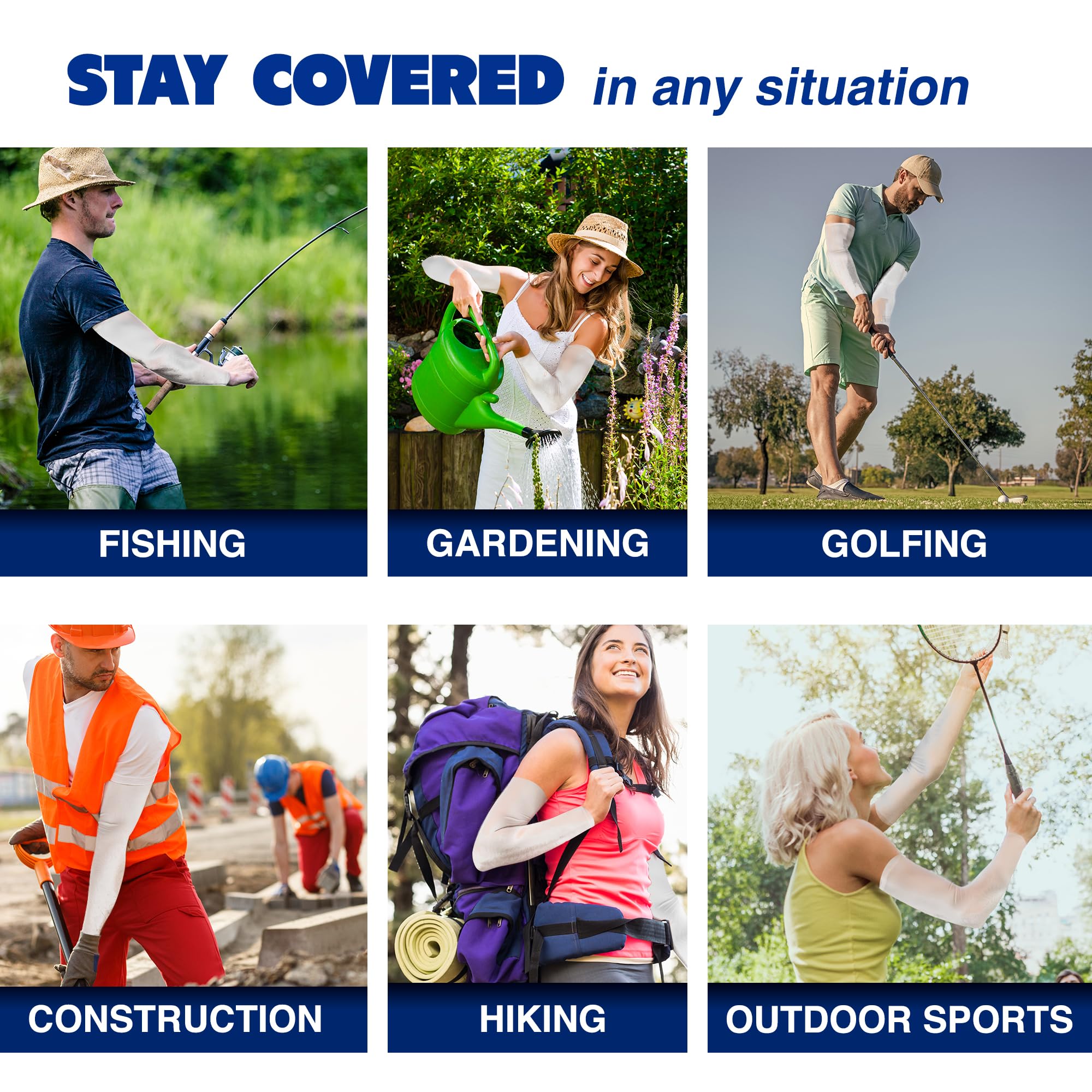 PROTECTION: Each compression sleeve arm protector is made from UV resistant material, our arm sleeves for women or men offer sun UV protection from over 98 percent of harmful rays; in colder months they make fantastic arm warmers