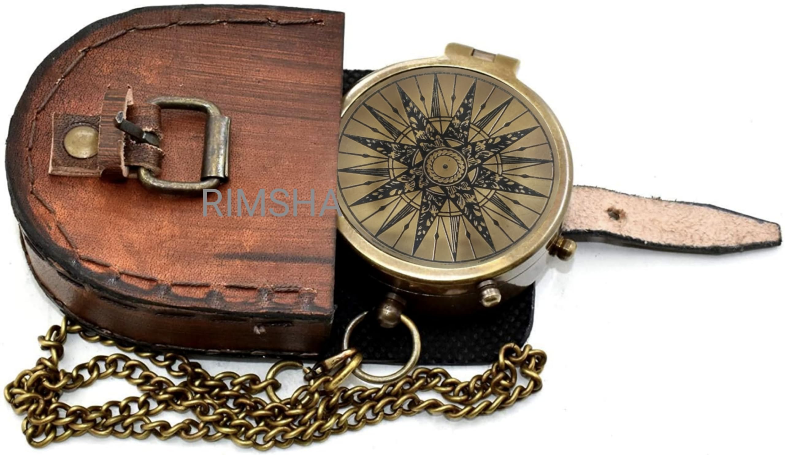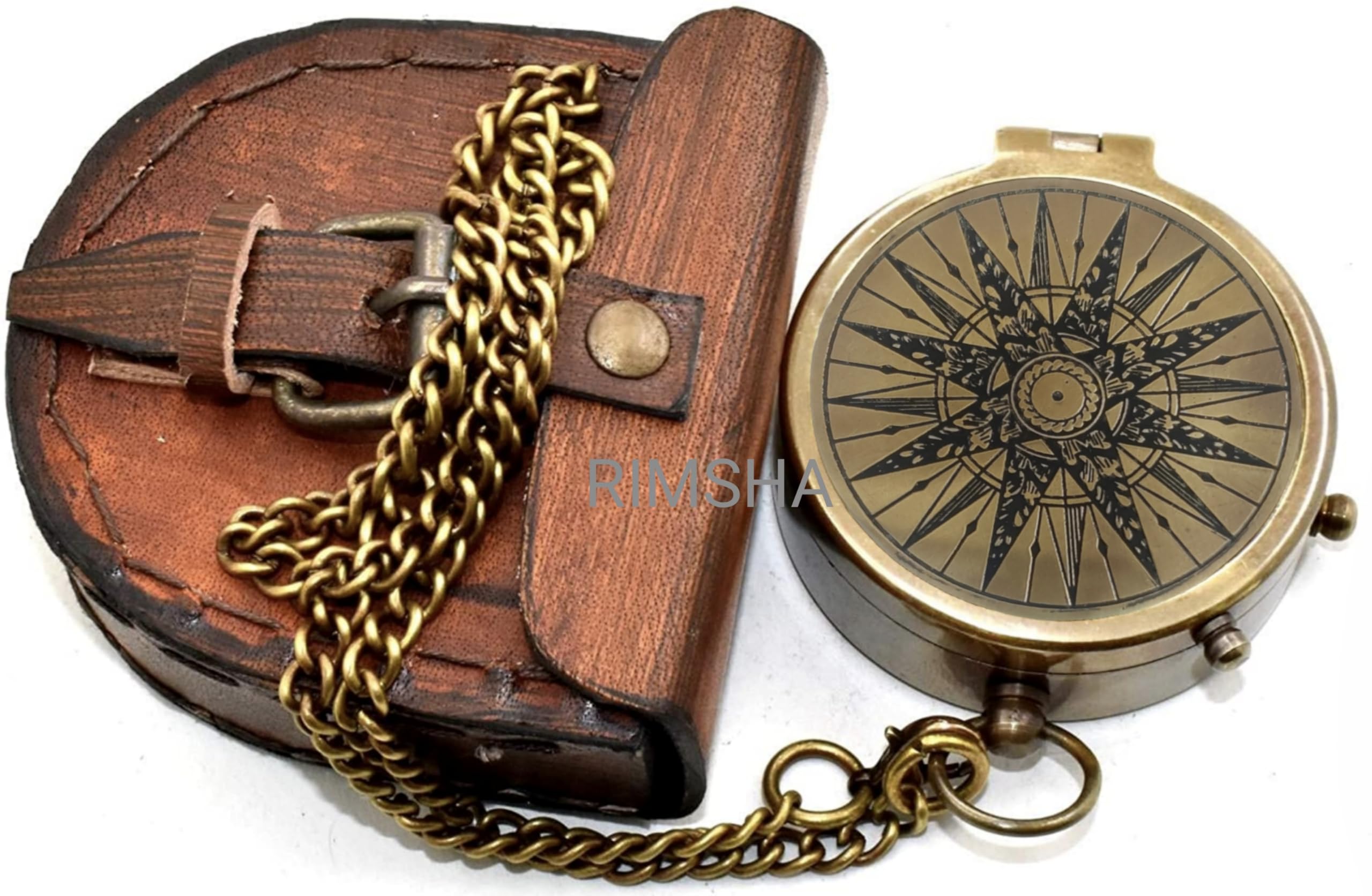 Navigate life’s journeys with the Brass Compass with Leather Case & Chain, a beautifully crafted vintage pocket compass designed for both function and sentiment. Made of solid brass with an antique finish, this compass features a precision needle and engraved details, making it as practical as it is collectible. Safely stored in a genuine leather case with chain, this compass is perfect for hiking, camping, scouting, survival training, or nautical exploration. Its compact design makes it portable, while its durable construction ensures it will last for years. A thoughtful gift for son, dad, or any loved one, it symbolizes guidance, direction, and adventure, making it a perfect keepsake for graduations, birthdays, Father’s Day, or special milestones. Whether used as a navigation tool or cherished as a decorative heirloom, the Brass Compass is a timeless piece of craftsmanship.