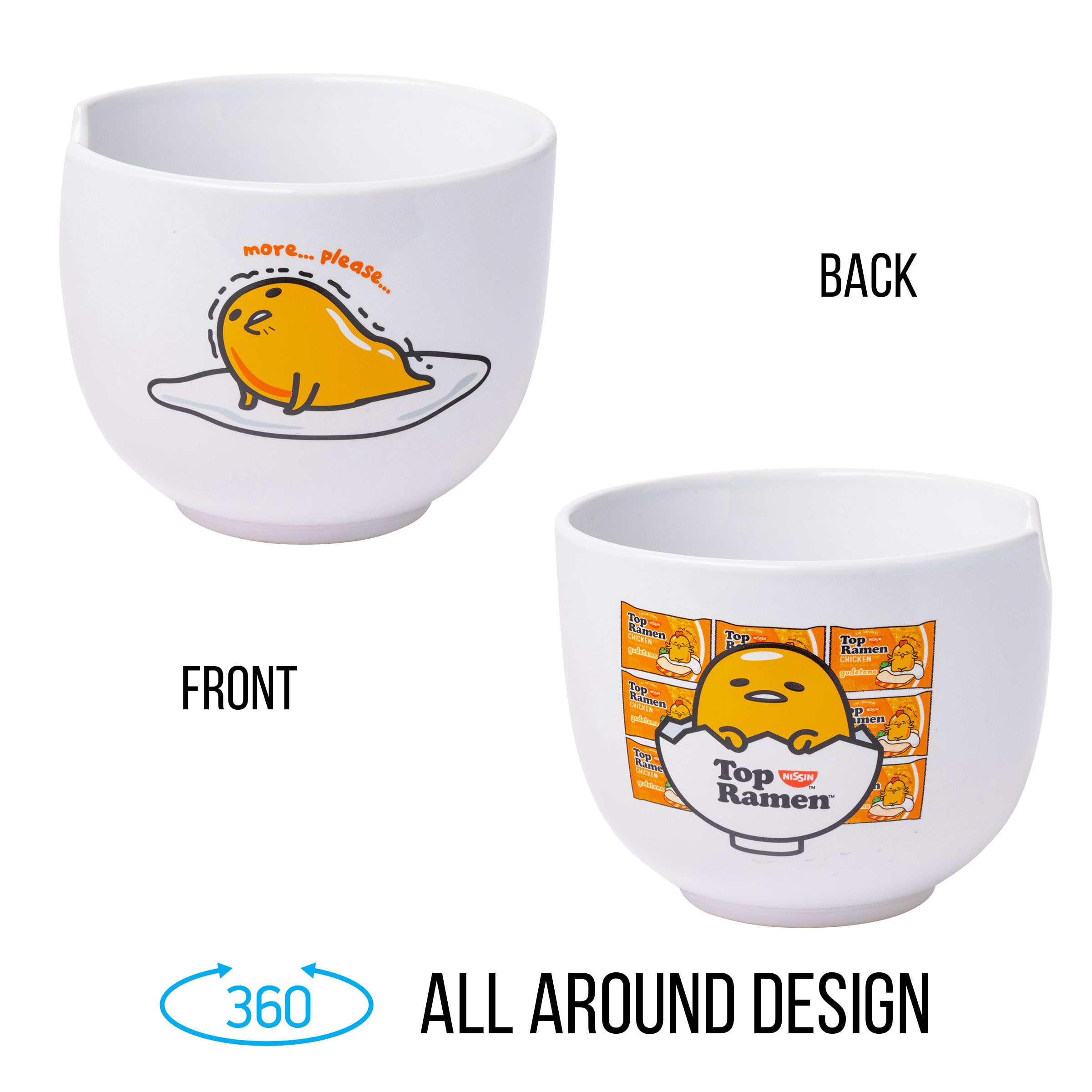 OFFICIALLY LICENSED - Hatch up something delicious with this themed ramen set, pairing up Sanrio's adorable Lazy Egg and Nissin's Chicken Flavored Top Ramen. Each savory slurp from this ramen bowl will have you saying, ""More Please.