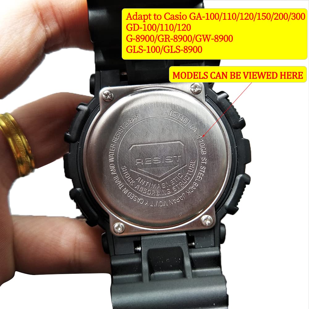 2、Compatible with G-shock GA-100 / GA-110 / GA-100C / GA-300 / GA-120 / GA-200/ GA-150 / GA100B-4 / GD-100 / GD-110 / GD-120 / GLS-100/GLS-8900 / GR-8900 / GW-8900,For watches with a 16mm interface on the lugs, please compare the size when purchasing