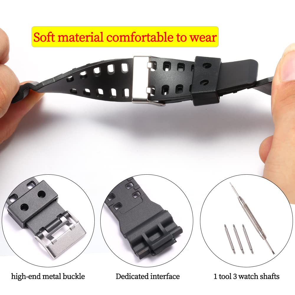Description Natural Resin material, safe and assured, pattern selection,Compatible with G-shock GA-100 / GA-110 / GA-100C / GA-300 / GA-120 / GA-200/ GA-150/GA-700/ GA100B-4 / GD-100 / GD-110 / GD-120 / GLS-100/GLS-8900 / GR-8900 / GW-8900 Men's Sport Waterproof Replacement WristBand 16mm lug Watch band