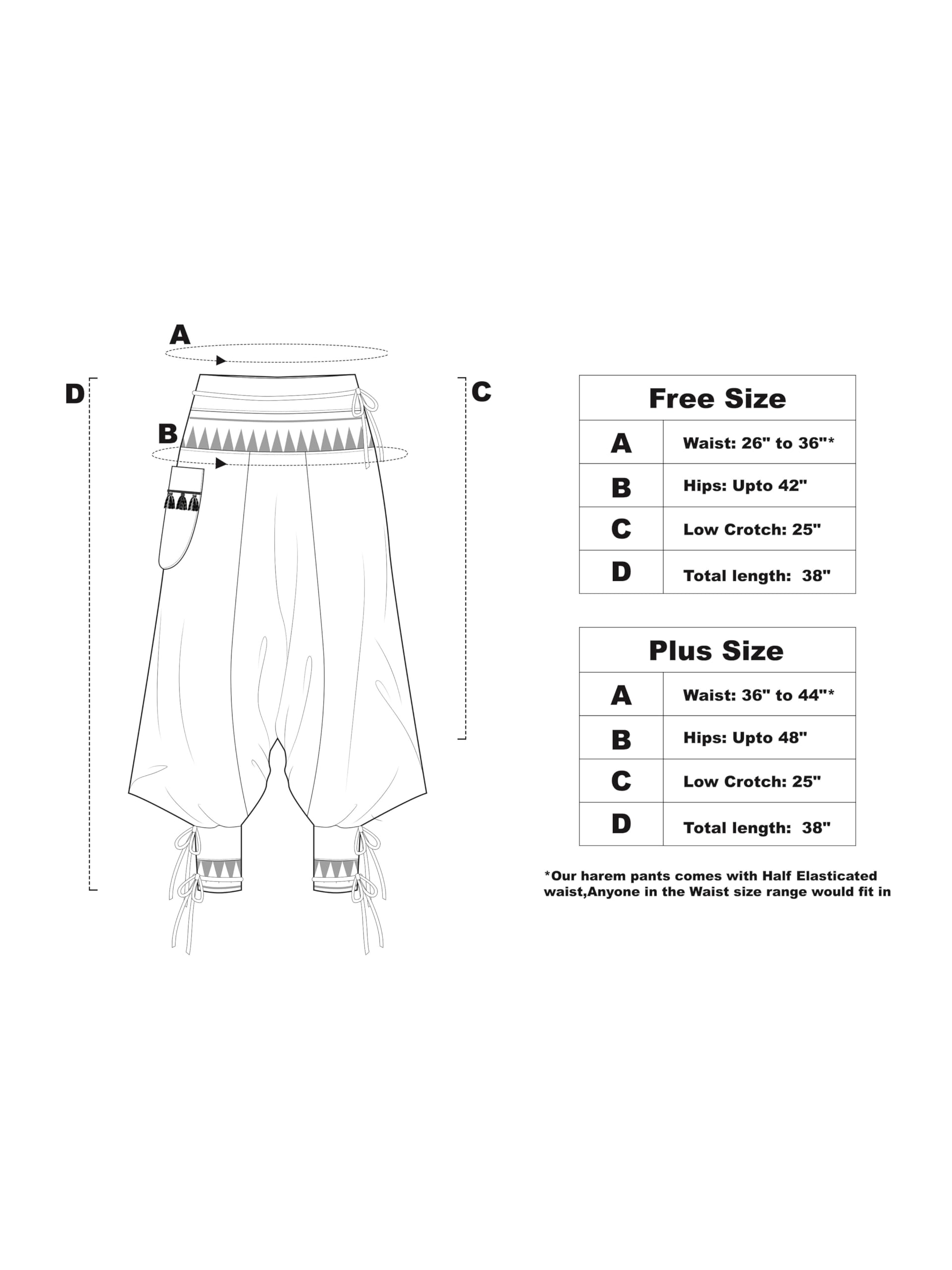 Relaxed Harem Fit – Crafted with a drop-crotch silhouette and wide, flowing legs that deliver unrestrained comfort, easy moveWoment, and effortless boho style.