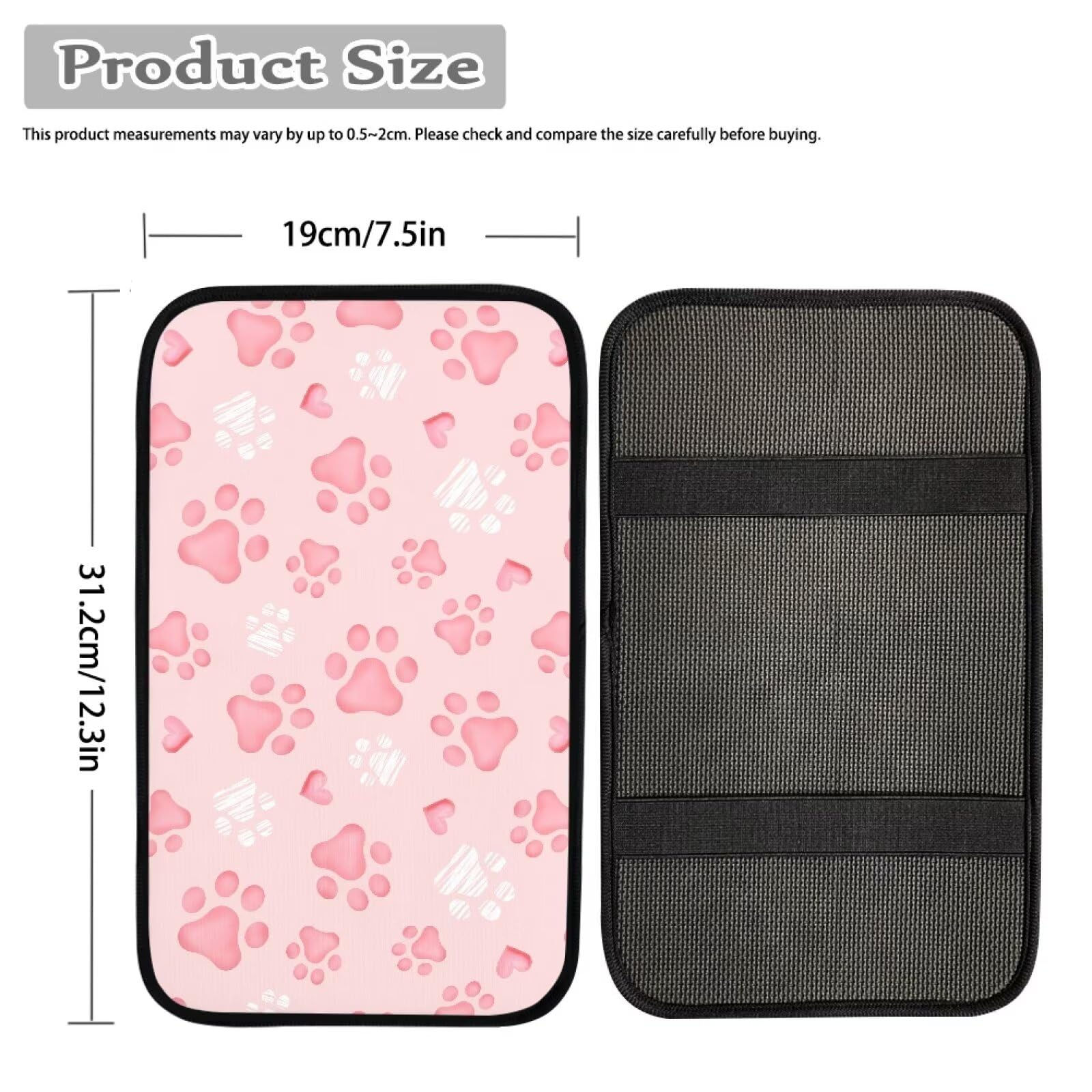 Our armrest pad is 12.6 inch long, 7.5 inch wide that matches most of the auto car center console armrest box, it covers whole top and make it looks different by stylish patterns