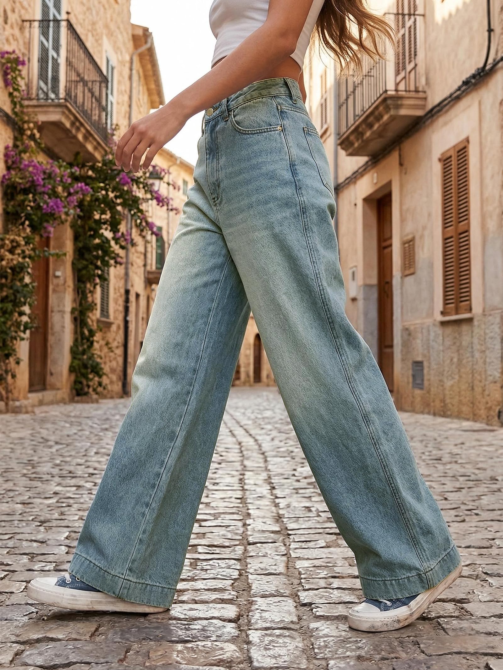 Vintage wide leg jeans fit anybody perfectly, can both be everyday jeans and dress-up jeans. vintage mid-high waisted pants are perfect for casual daily, school, work, office, street, shopping, travel, lounge.
