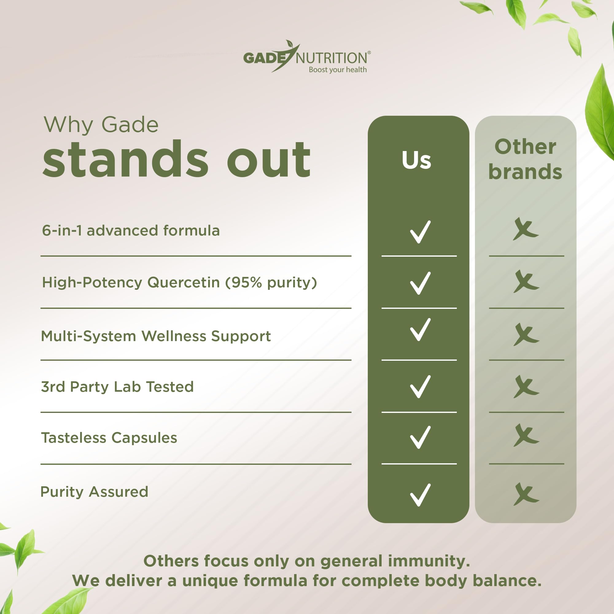 SIX POWERHOUSE IMMUNE SUPPORT INGREDIENTS: Gade Nutrition's nettle quercetin with vitamin c and zinc combine the strength of not one but six high-quality, immune support ingredients. Our quercetin with bromelain formula includes nettle leaf to help provide antioxidant support, zinc supplement to help in immune function, and for an extra immune boost, we’ve added vitamin D and vitamin C to bring you a powerful immune support supplement great for any season