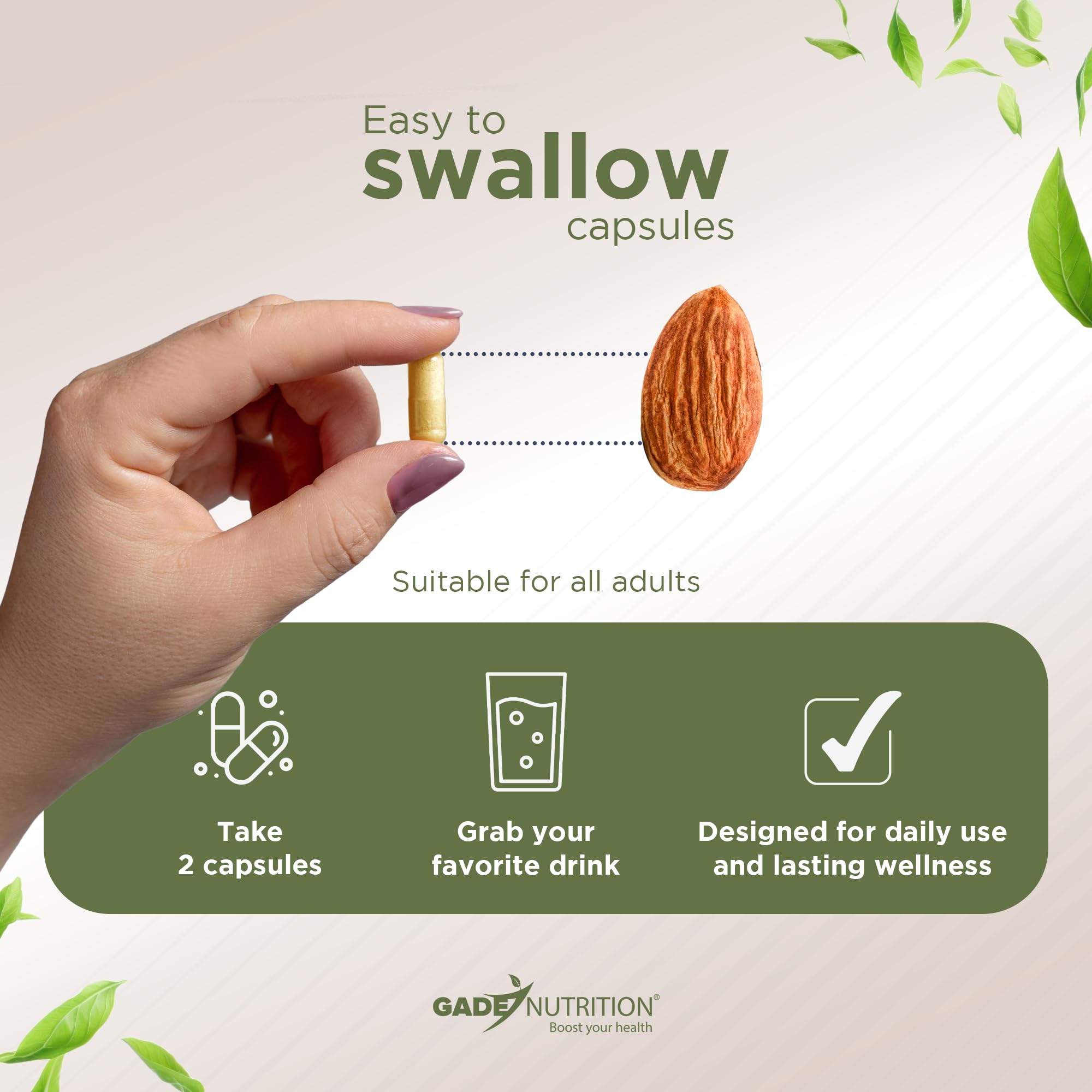 SAFE STANDARD QUALITY: Our products are manufactured in the USA with all-natural, fast-dissolving veggie capsules. Made in an FDA-registered laboratory that is GMP certified. We hold ourselves to high standards of natural purity, Potency, and Third Party Tested. Trust Gade Nutrition for a high-quality supplement. Our pills are made with non-GMO, gluten-free, sugar-free ingredients, no stimulants, no binders, no fillers, no allergens, and no chemicals