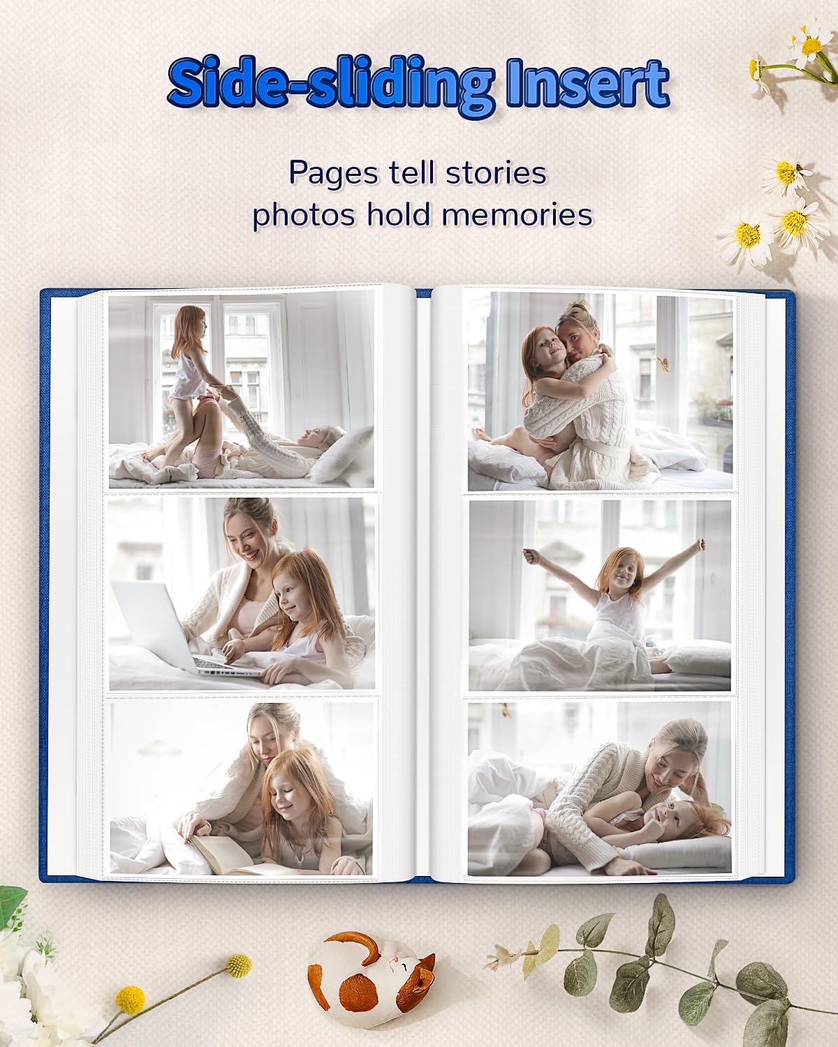 📏Album Size:The album measures 13.5 x 7.5 x 2 inches in size. It features a convenient slip-in design that can horizontally hold 300 4x6 inch photos, with each page holding 3 photos for a total of 50 sheets/100 pages.