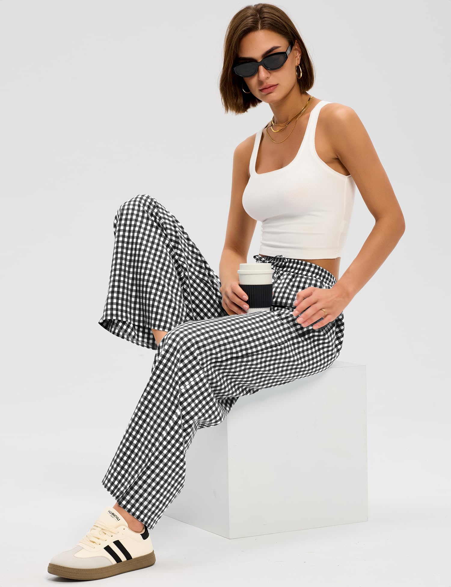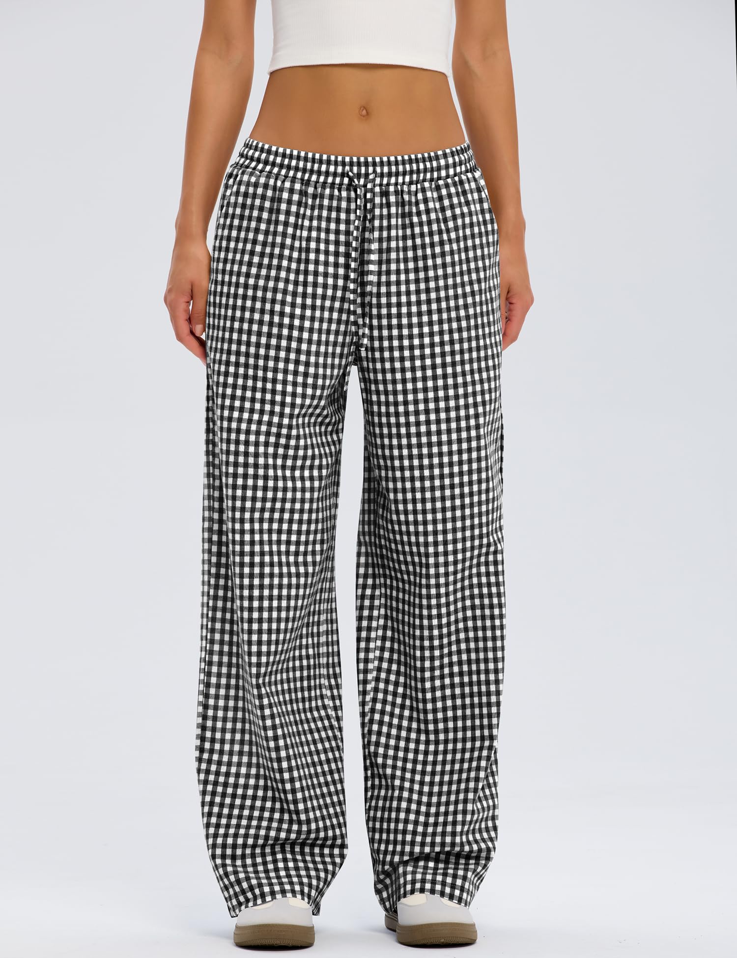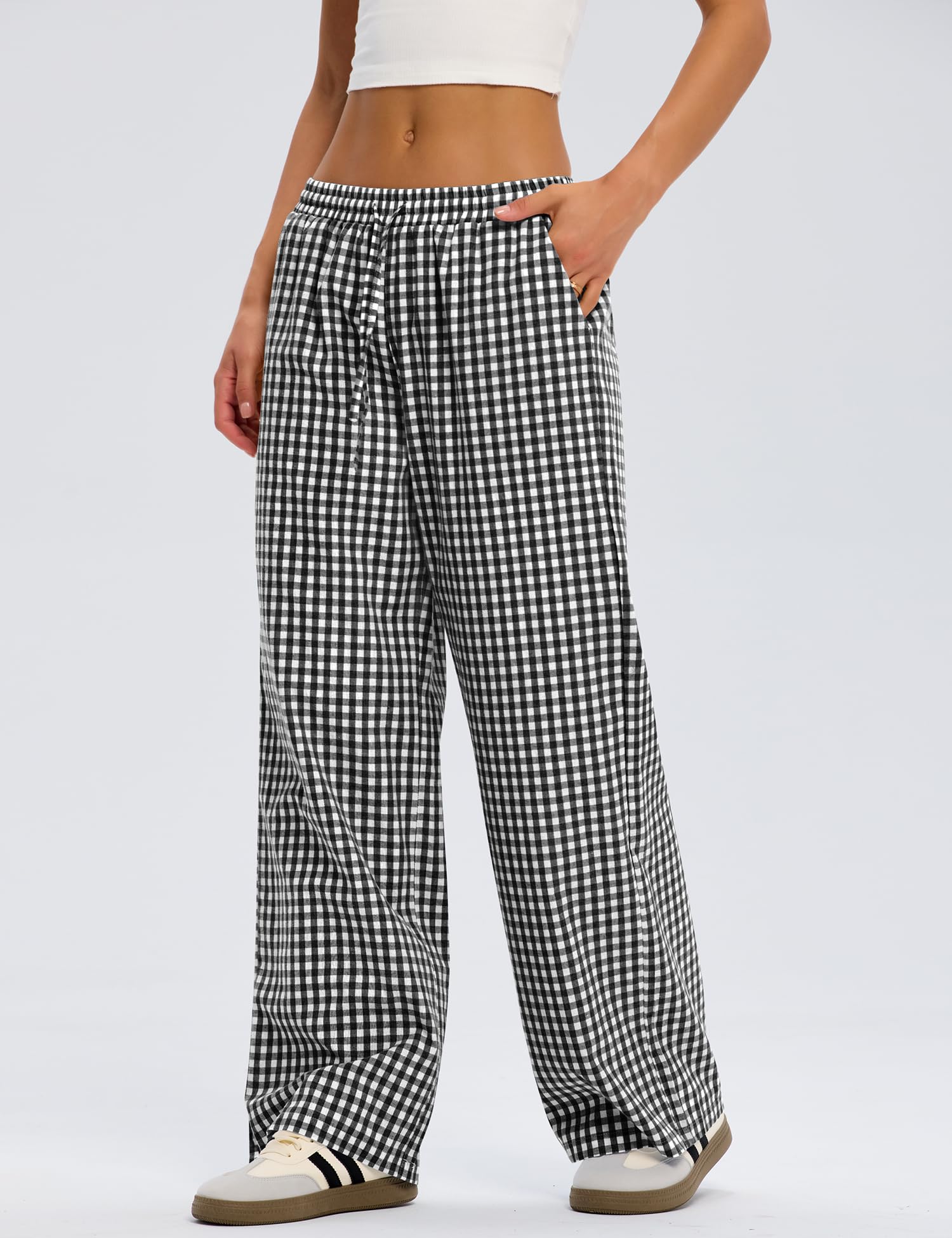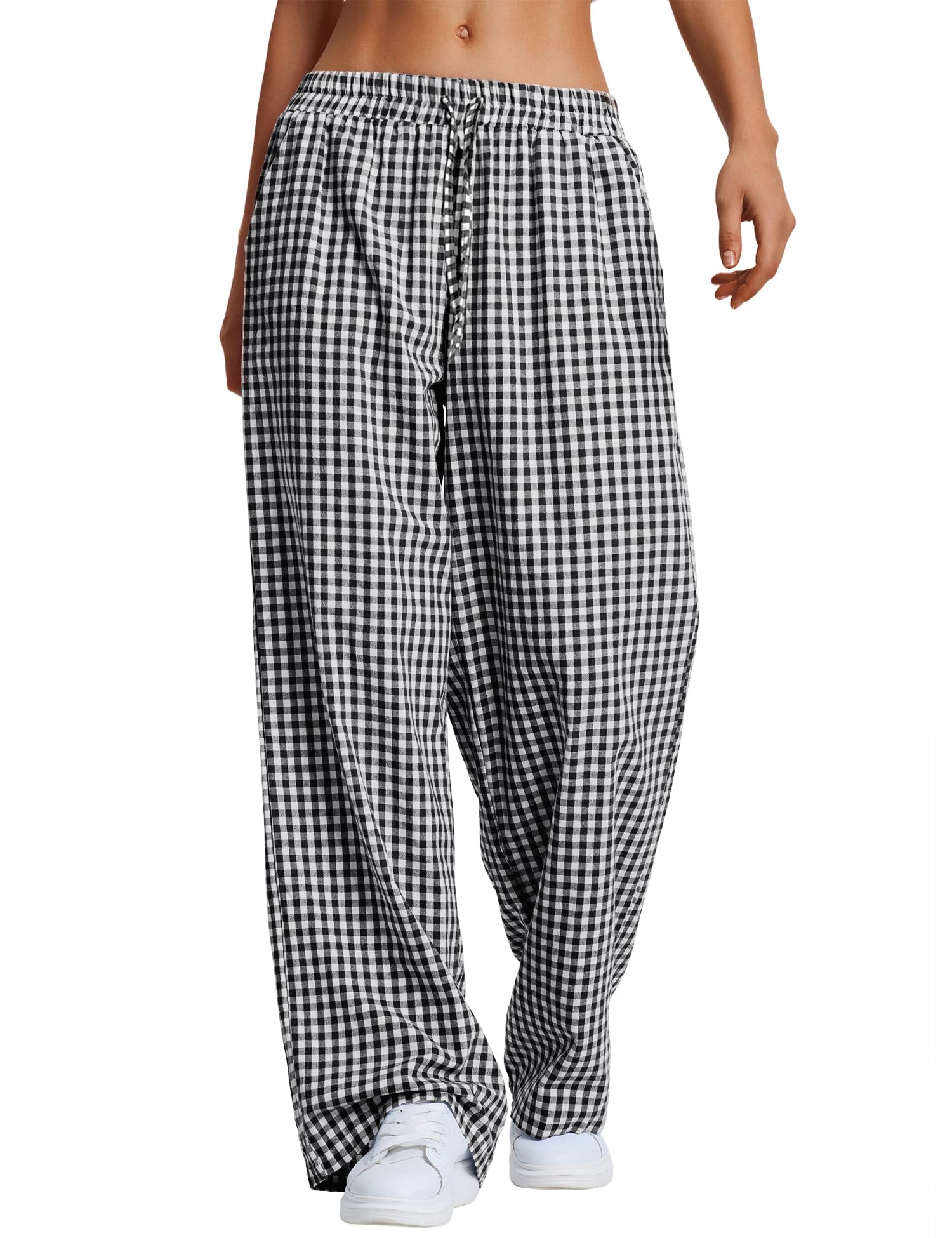 Crafted from soft, breathable fabrics, these striped gingham pants are designed to keep you cool and comfortable throughout the day. Ideal for crisp autumn spring summer weather, they provide maximum comfort whether you're lounging at home or running errands.