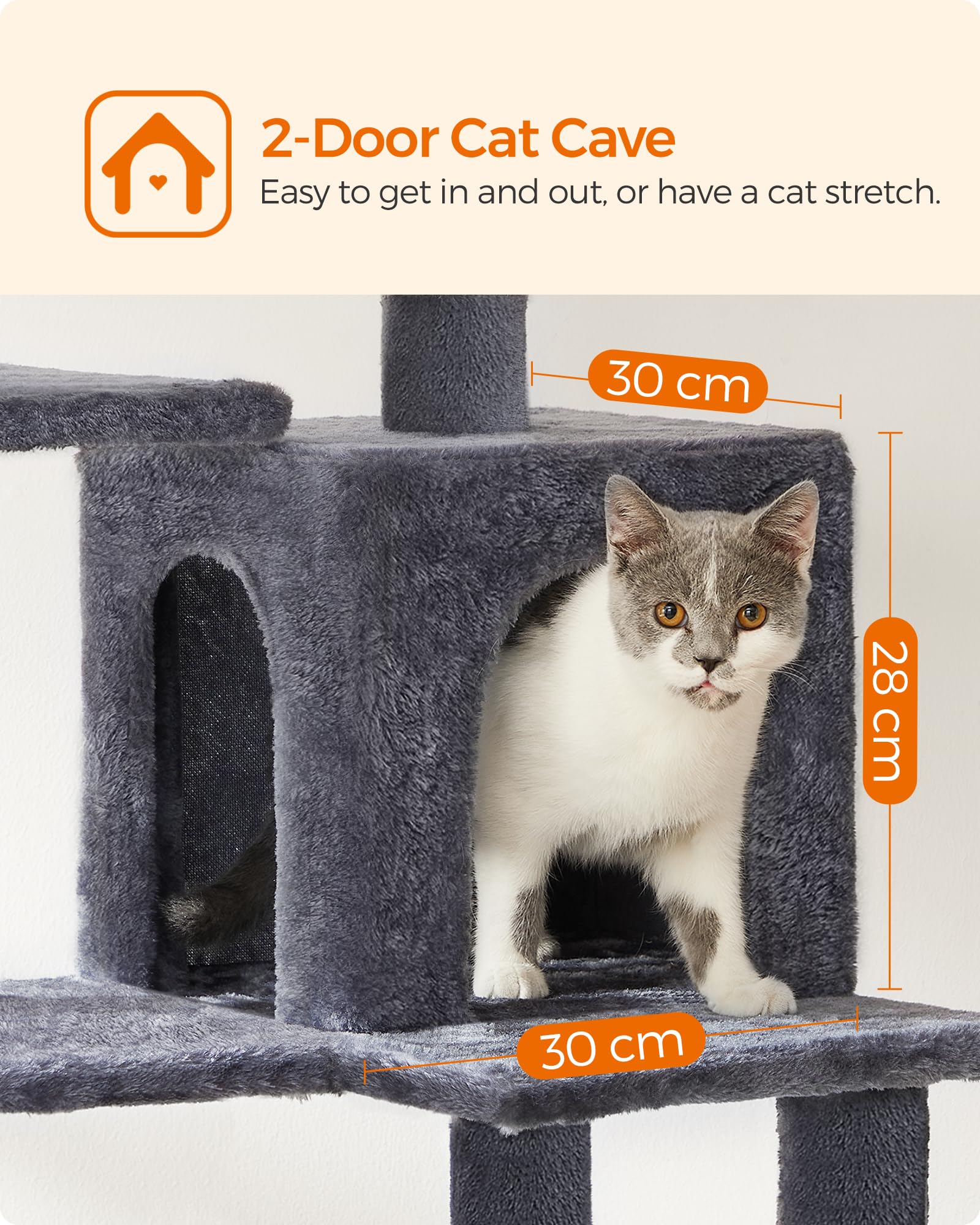 Climbing Made Easy: This cat condo boasts a multi-level design with a climbing step on the side, so even elderly cats and cats with mobility issues can climb up and down with ease