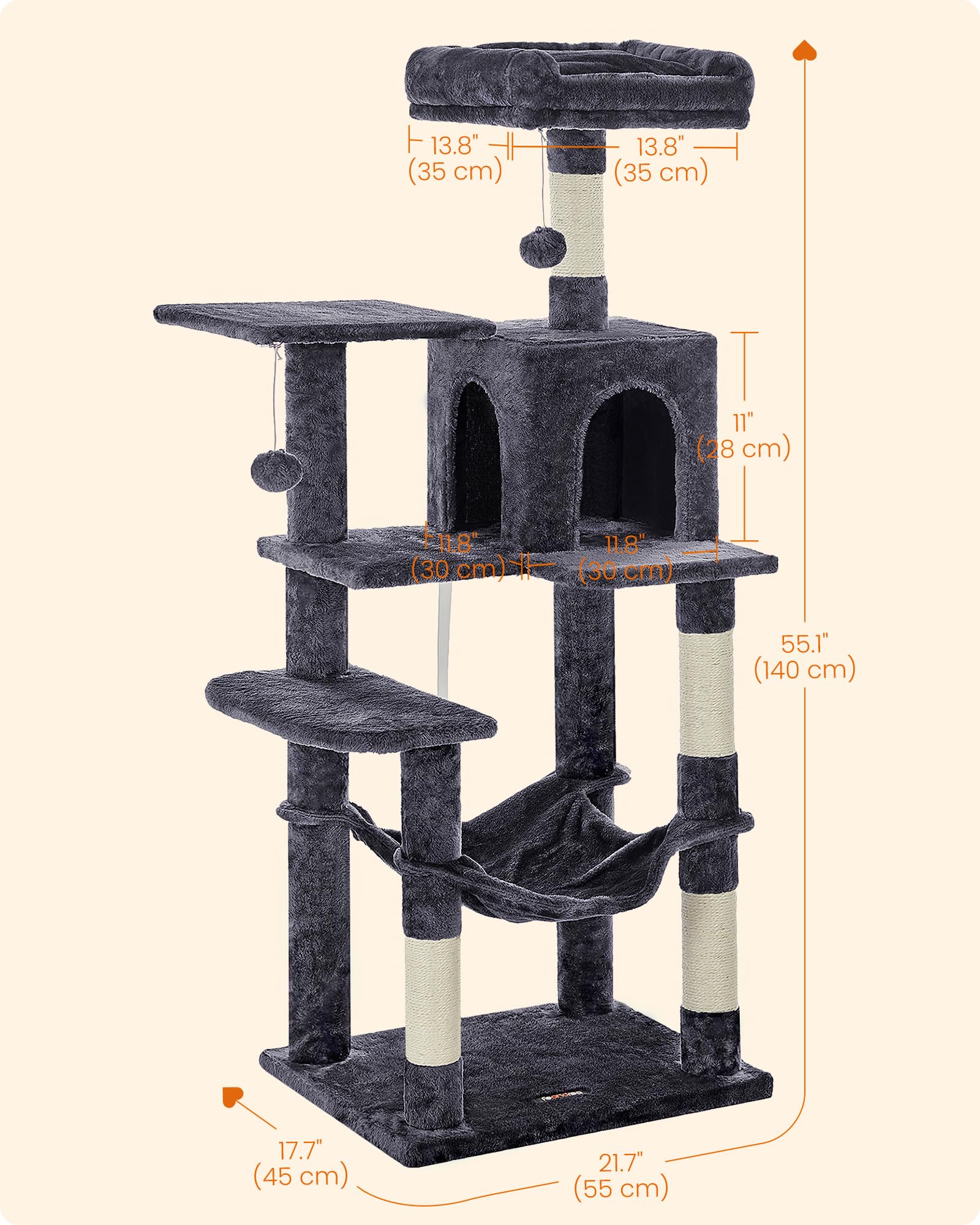 For Multi-Cat Households: Featuring 2 top perches and a comfy cat cave, this cat tree offers multiple cozy places for each of your little furballs to nap and relax