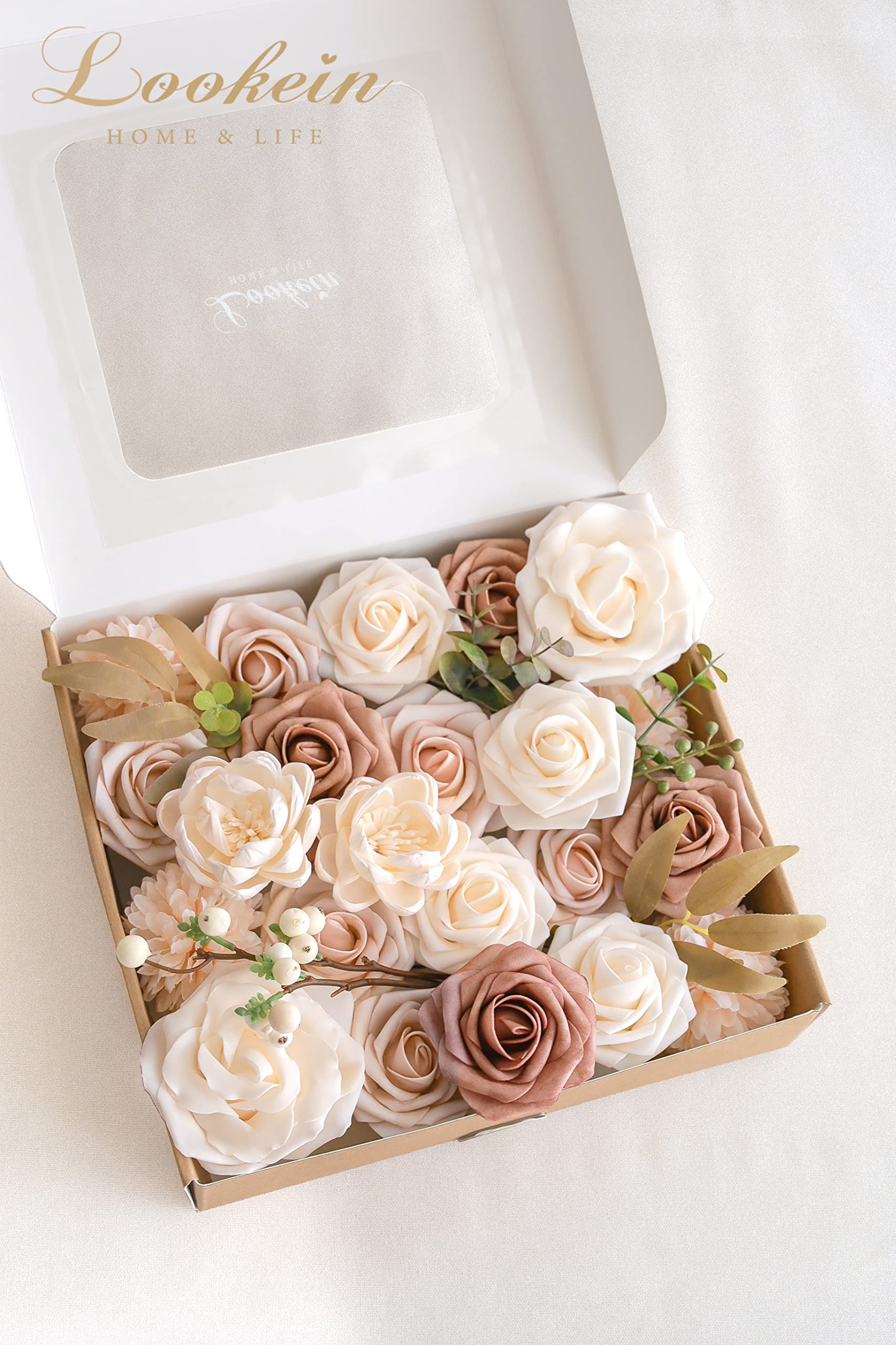 Specific Combo Pack: This artificial flower box set is combined with a variety of flowers and greeneries in a specific color scheme, which is perfect for your statement floral arrangement, making your event take on character easily.