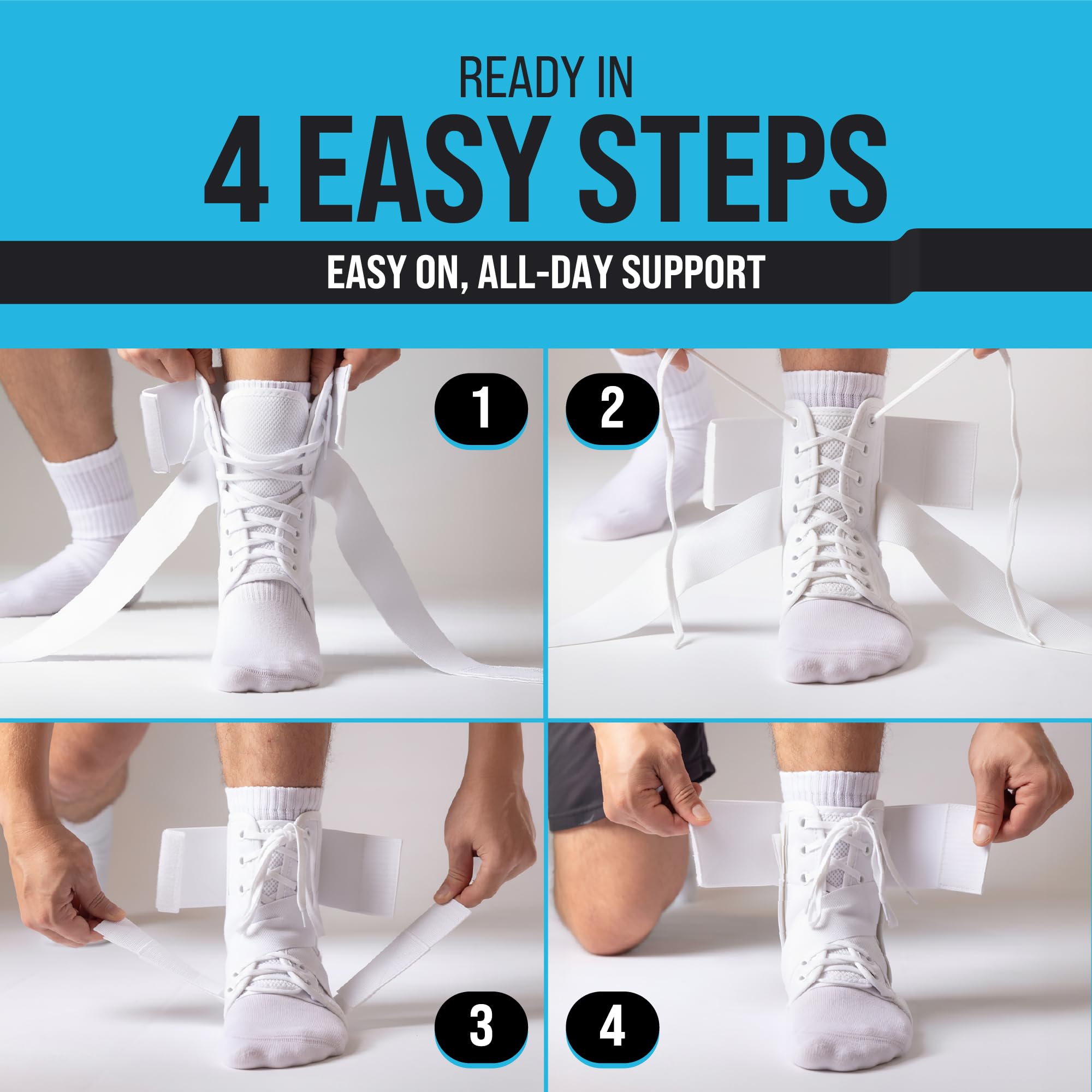 Laces In, Shoes On, No Bulk: Our figure-8 lacing system lets you dial in exact compression and lock it down, unlike hook-and-loop braces that loosen mid-game. Slim-profile design fits inside basketball shoes, volleyball shoes, work boots, and women's sneakers without sizing up.