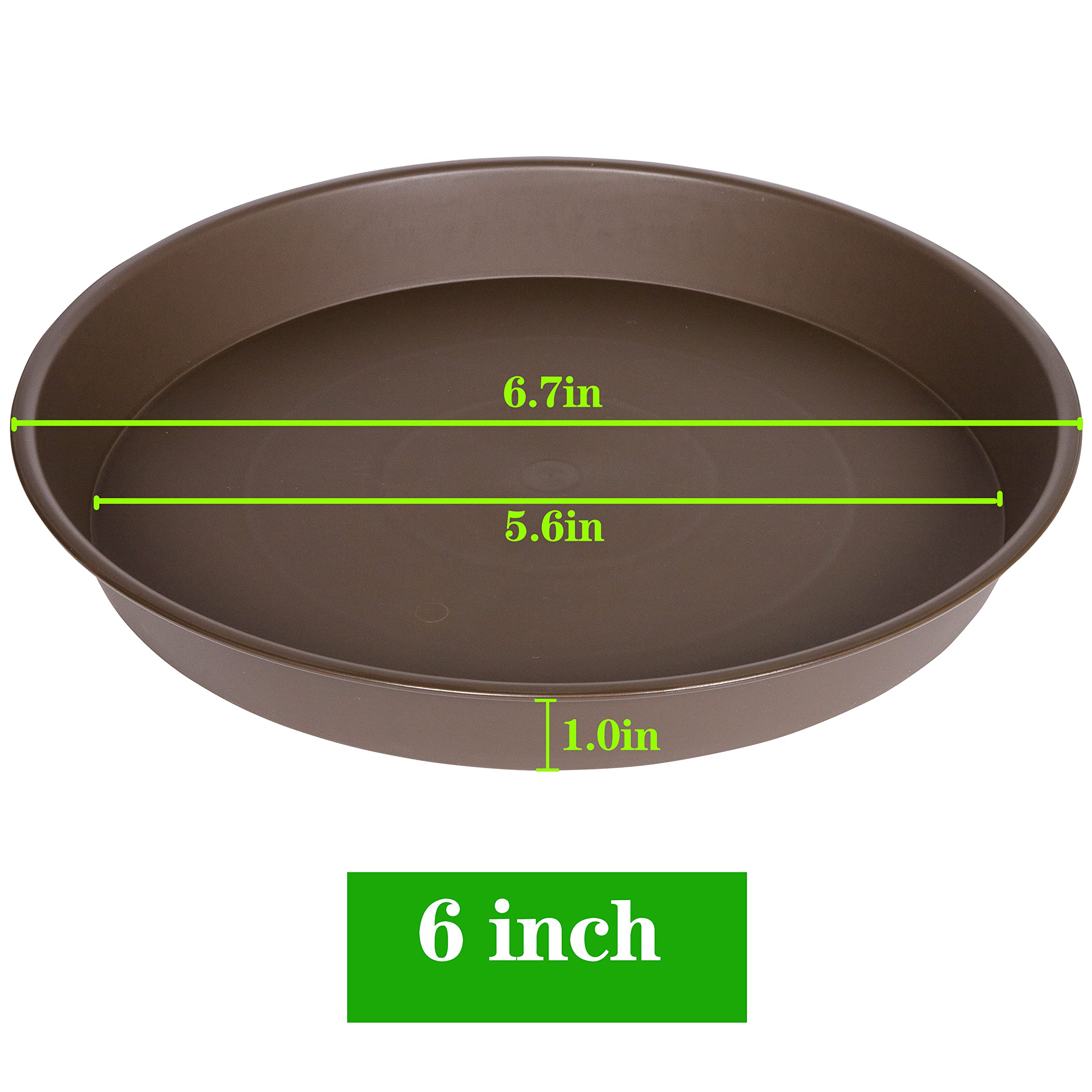 【PlANT SAUCER VALUE】6 inch Plant saucer small, 6 packs brown plant saucers, Plant Saucers for Indoors, inner diameter is 5.6" width and outer diameter is 6.7" width, 1.0'' Height, suitable for planters with bottom diameter less than 5.5 inches.