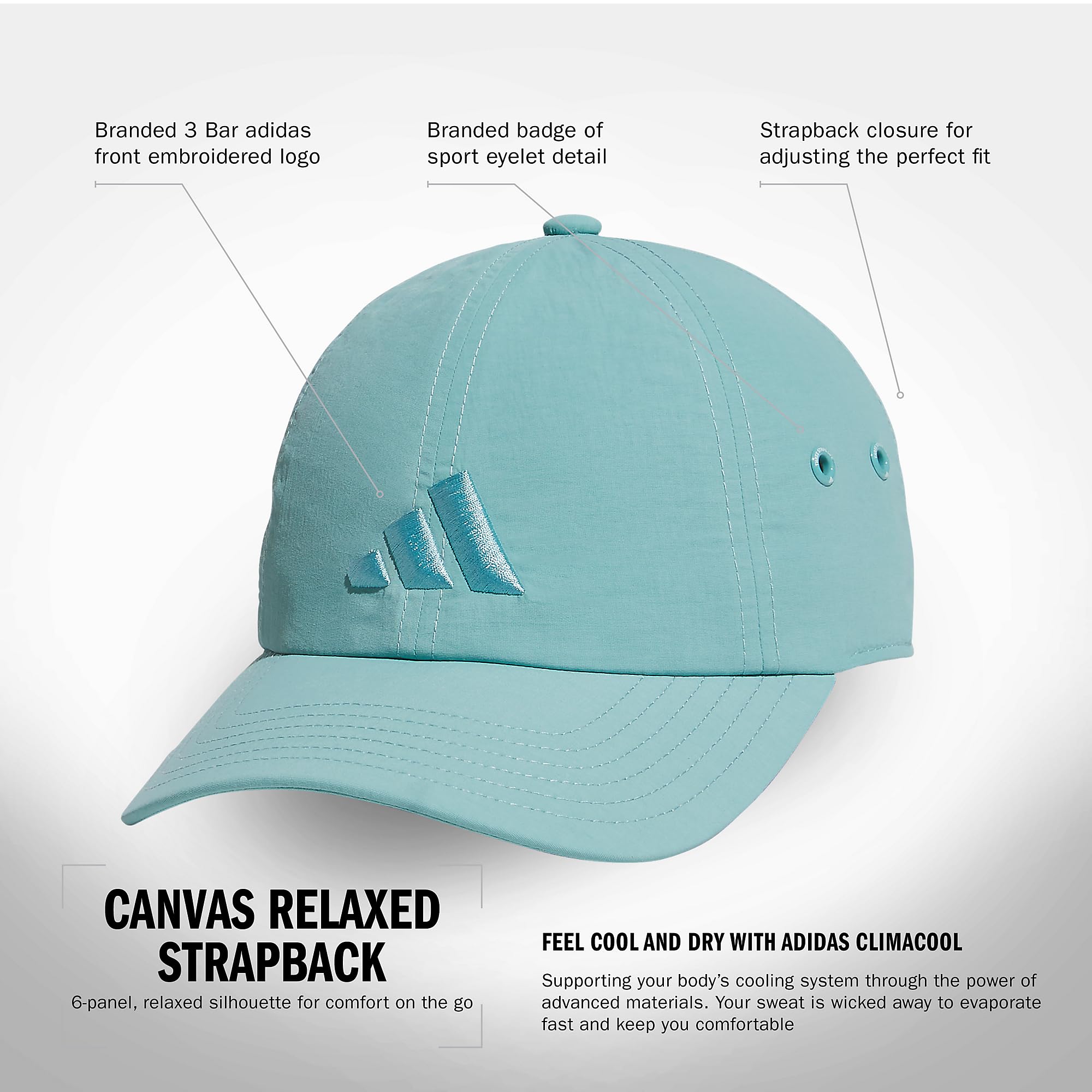 Description Grab this sport hat and you're ready to go. An embroidered adidas 3-Bar logo keeps your look sporty. Adjust the strap for the perfect fit. The nylon cap feels soft and smooth to the touch.