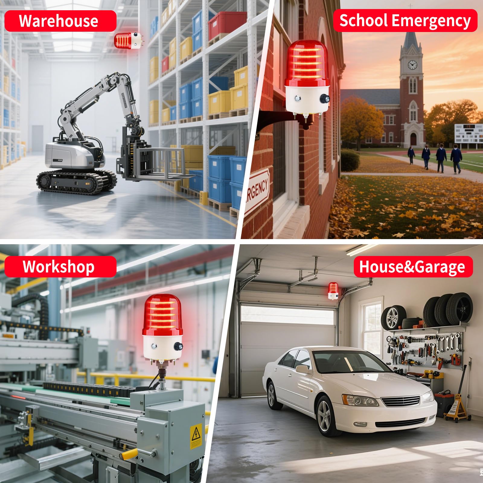 Versatile Use: Constructed with dust and moisture-resistant materials, suitable for a range of settings including factories, workshops, machinery, parking lots, schools, post offices, and garages.