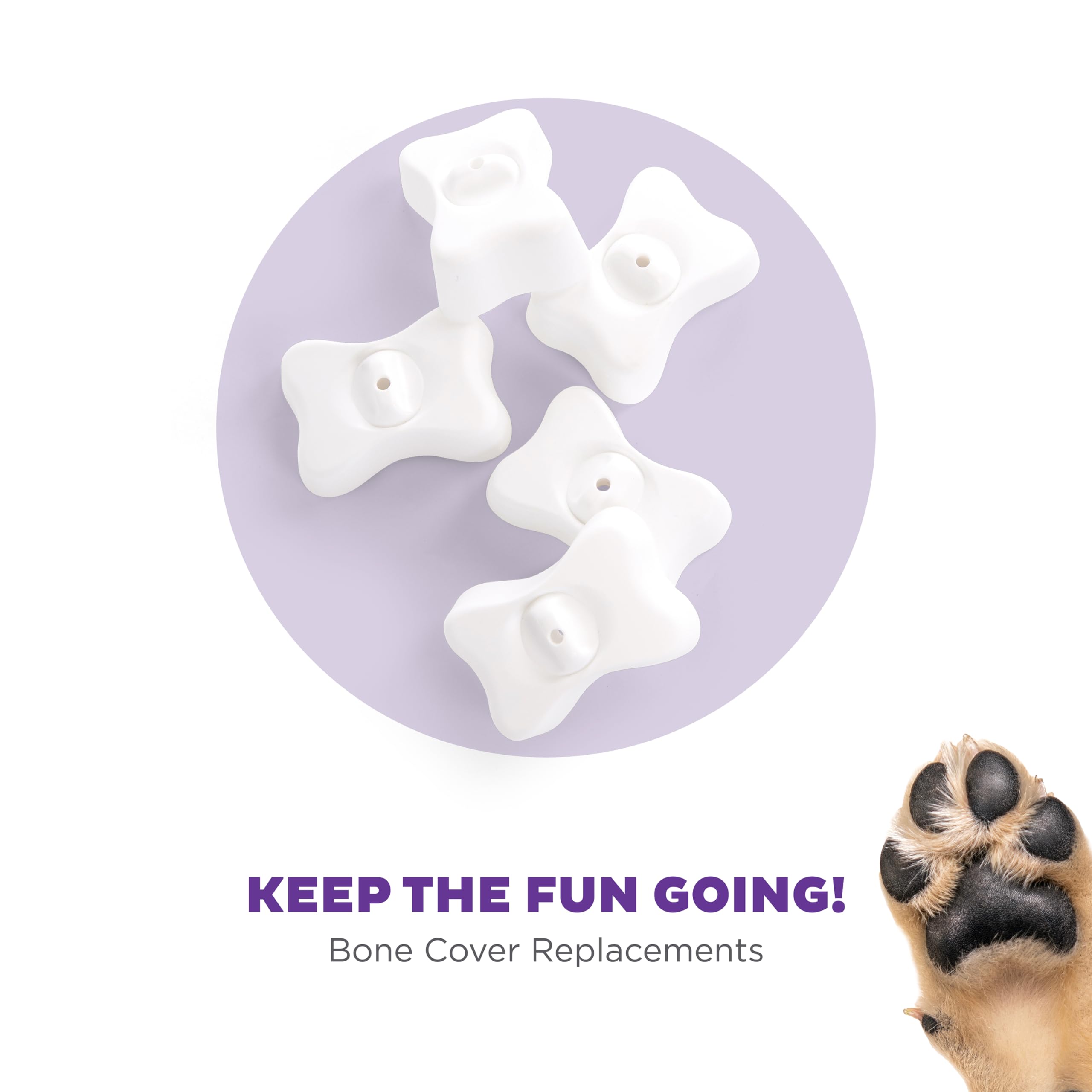 Bone Replacement Parts for Dog Puzzles are for select Nina Ottosson dog puzzles. These dog bones are for replacing damaged or lost bones from the Dog Brick, Dog Smart, and Dog Tornado games. Each pack comes with five bones to keep your pup puzzling and practicing their nosework! Simply place bones over treat compartments in Nina Ottosson's Dog Brick, Dog Smart, or Dog Tornado games. Dog puzzless are great for mental stimulation for dogs and dog enrichment by testing your dog's problem-solving skills. PLAY BY THE RULES – SAFETY & CARE: When choosing a toy, make sure to choose an appropriate size/style/level for your dog. No toy or game is indestructible. ALWAYS supervise your dog closely, teach your dog how the game/toy works. Do not leave the dog alone with a treat game/toy, do not let the dog chew on the game/toy or pieces. Inspect regularly for damage and remove if broken, or if parts become separated, as serious injury may result. For dogs only, not a children's toy. When empty, store until next supervised use.