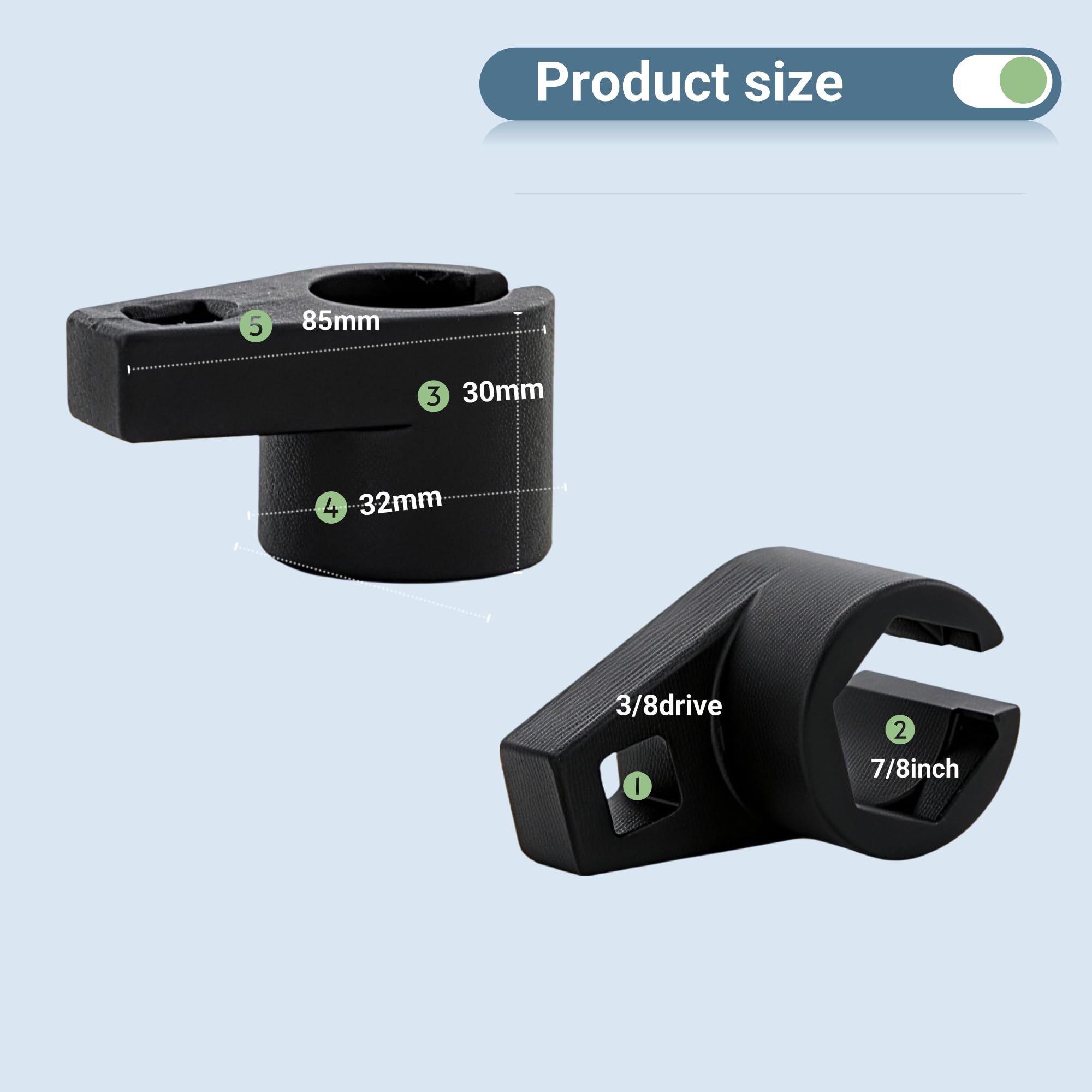 FEATURES:Removes and installs oxygen sensors on vehicles with computer-controlled engines,Common 6 point, 7/8 in. (22mm) socket fits most oxygen sensors,Use with any 3/8 inch drive ratchet or breaker bar,Offset drive with wire gate accesses sensor from the side, not the top, preventing damage to wires
