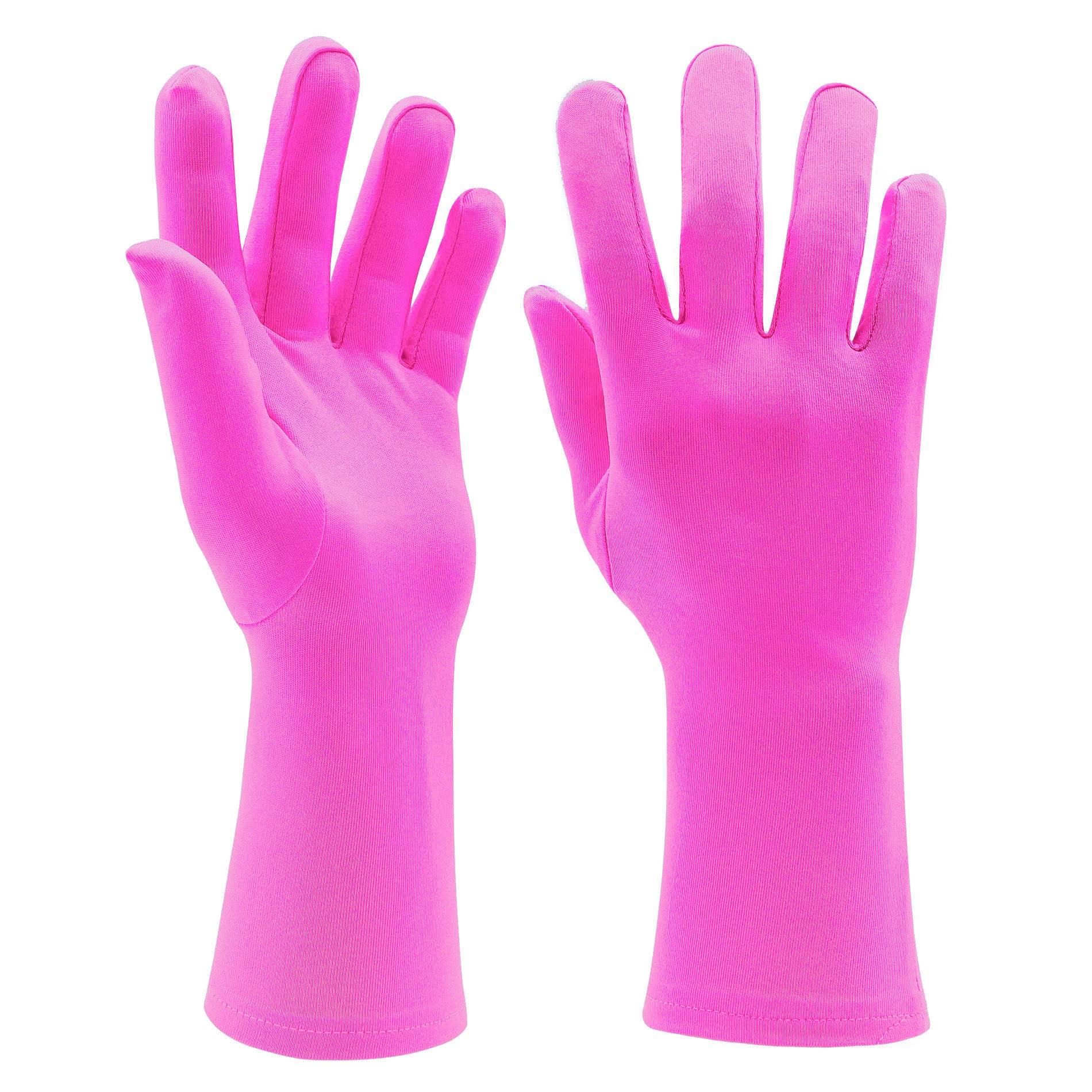 One size fits most with strong elasticity. The length from middle finger to wrist is approx. 9 inches