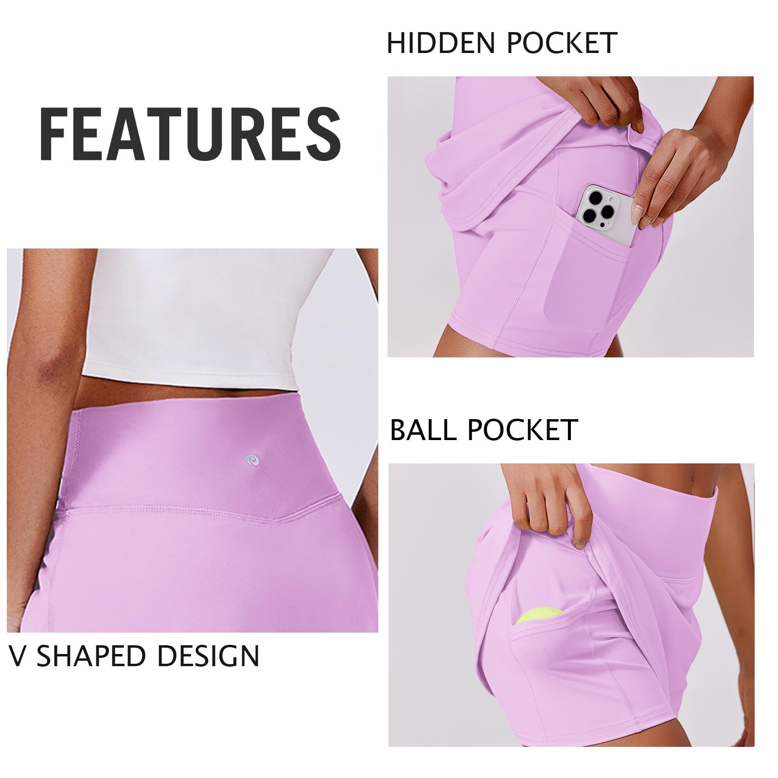 Soft Breathable Fabric: 15" tennis skirt is made of lightweight, breathable, providing a slight feel with excellent stretch and moisture-wicking properties