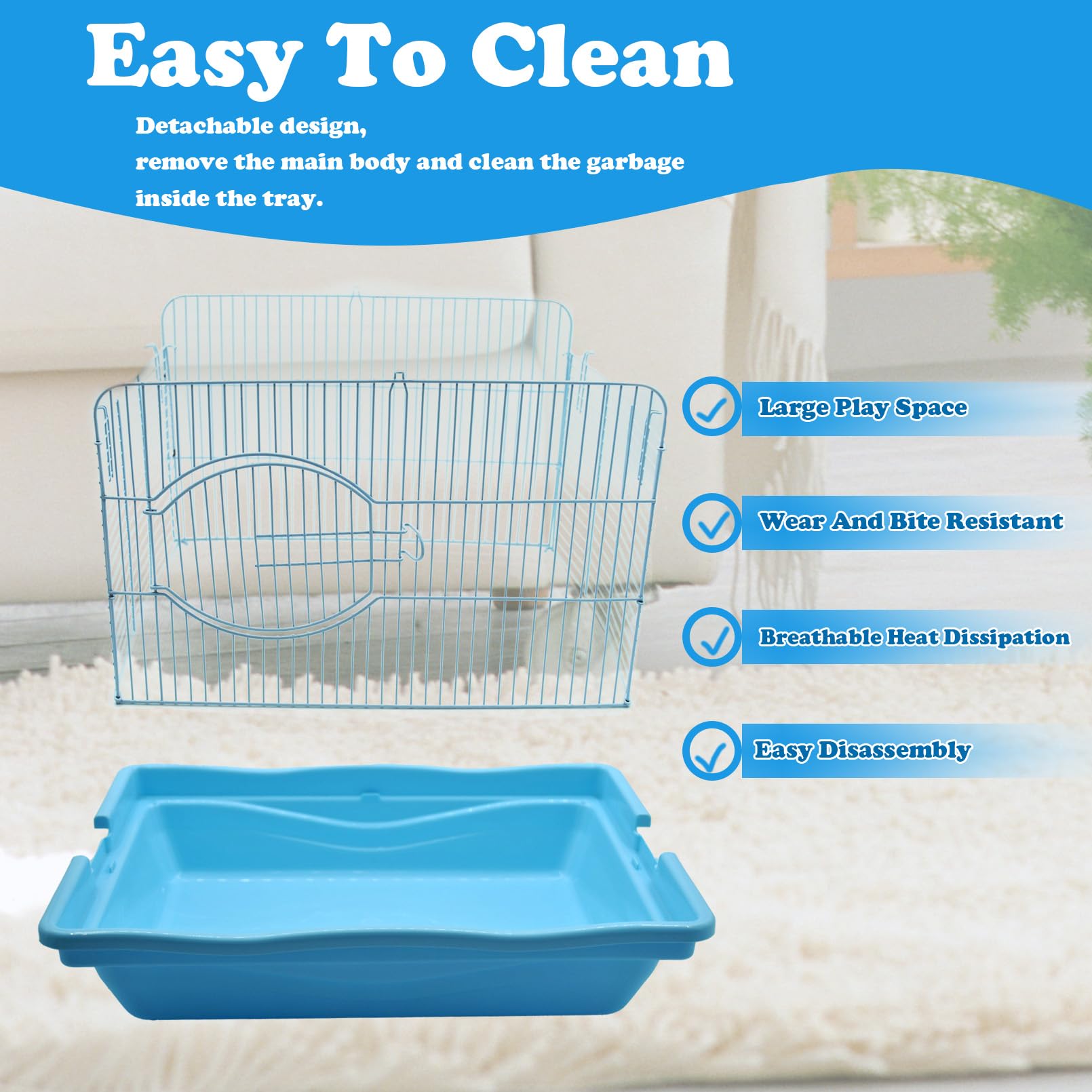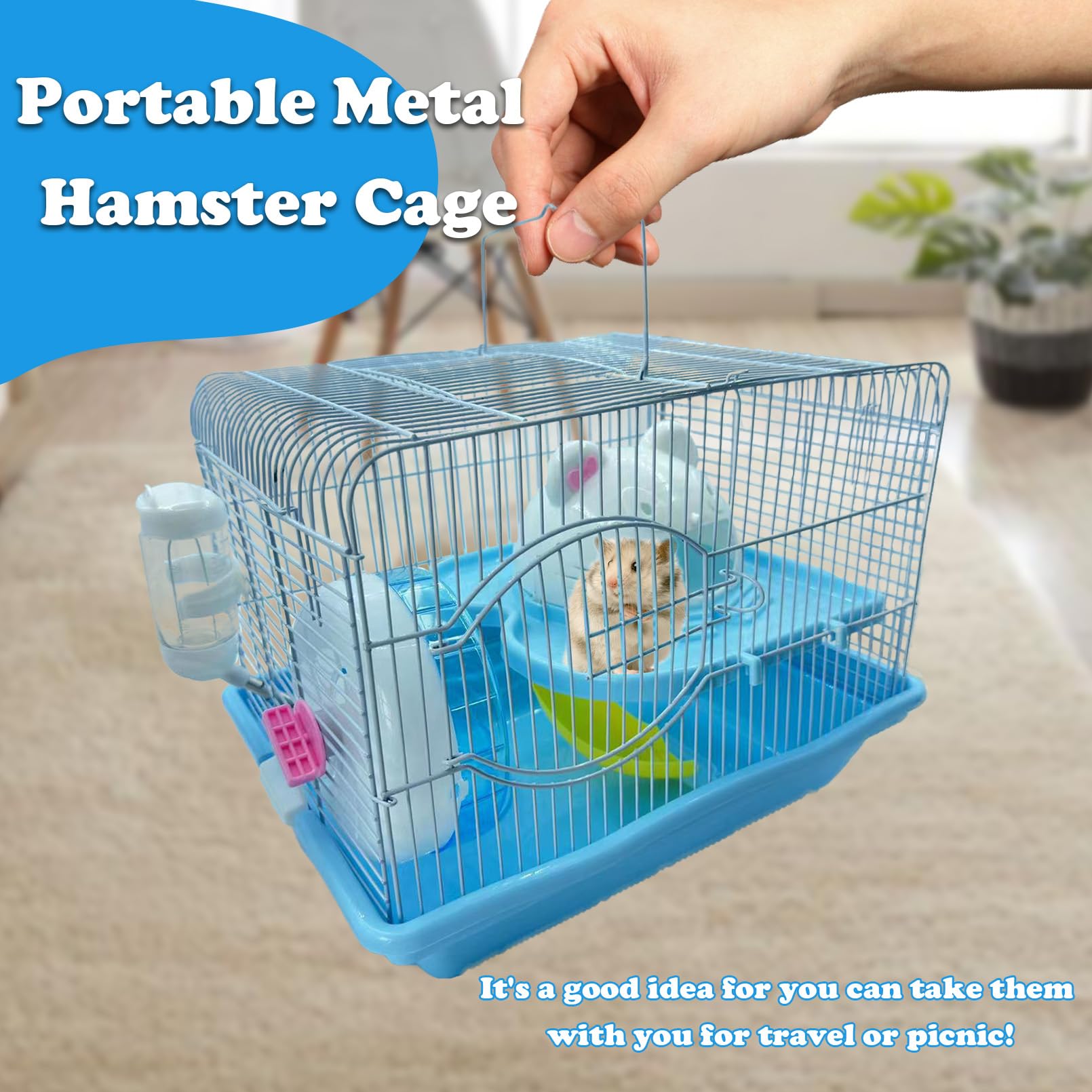 PORTABLE AND SIMPLE INSTALLATION: Assemble directly without the use of any tools. The facilities inside the hamster cage are all detachable design, all accessories can be disassembled and assembled quickly. It's a good idea for you can take them with you for travel or picnic. Hamster cages don't take up much space in the car