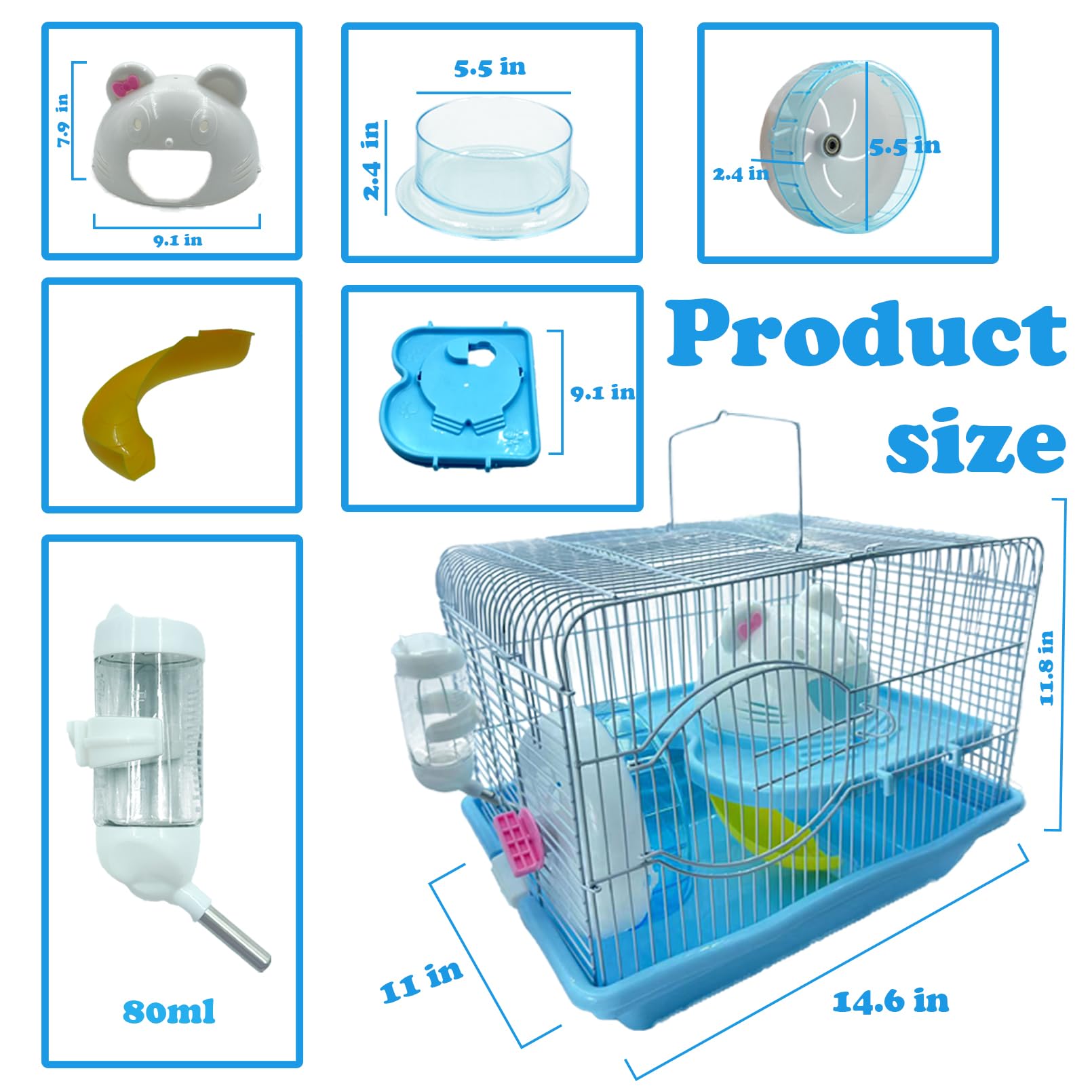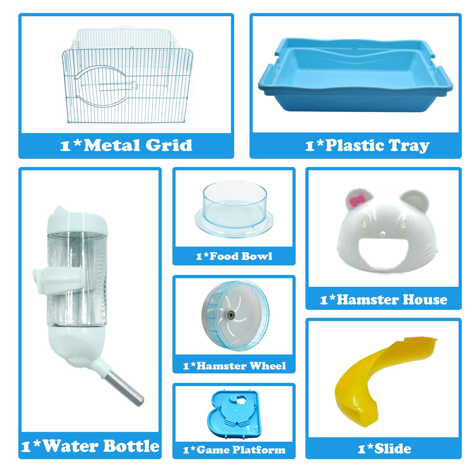 HEALTHY AND HAPPY GROWTH: Our hamster cages and habitats comes with free water bottle, houses and exercise wheel to give your child the best rest and play home. Pet rat cages and habitats your child can climb, explore, hide and have endless fun. Regular exercise can ensure your child's physical health