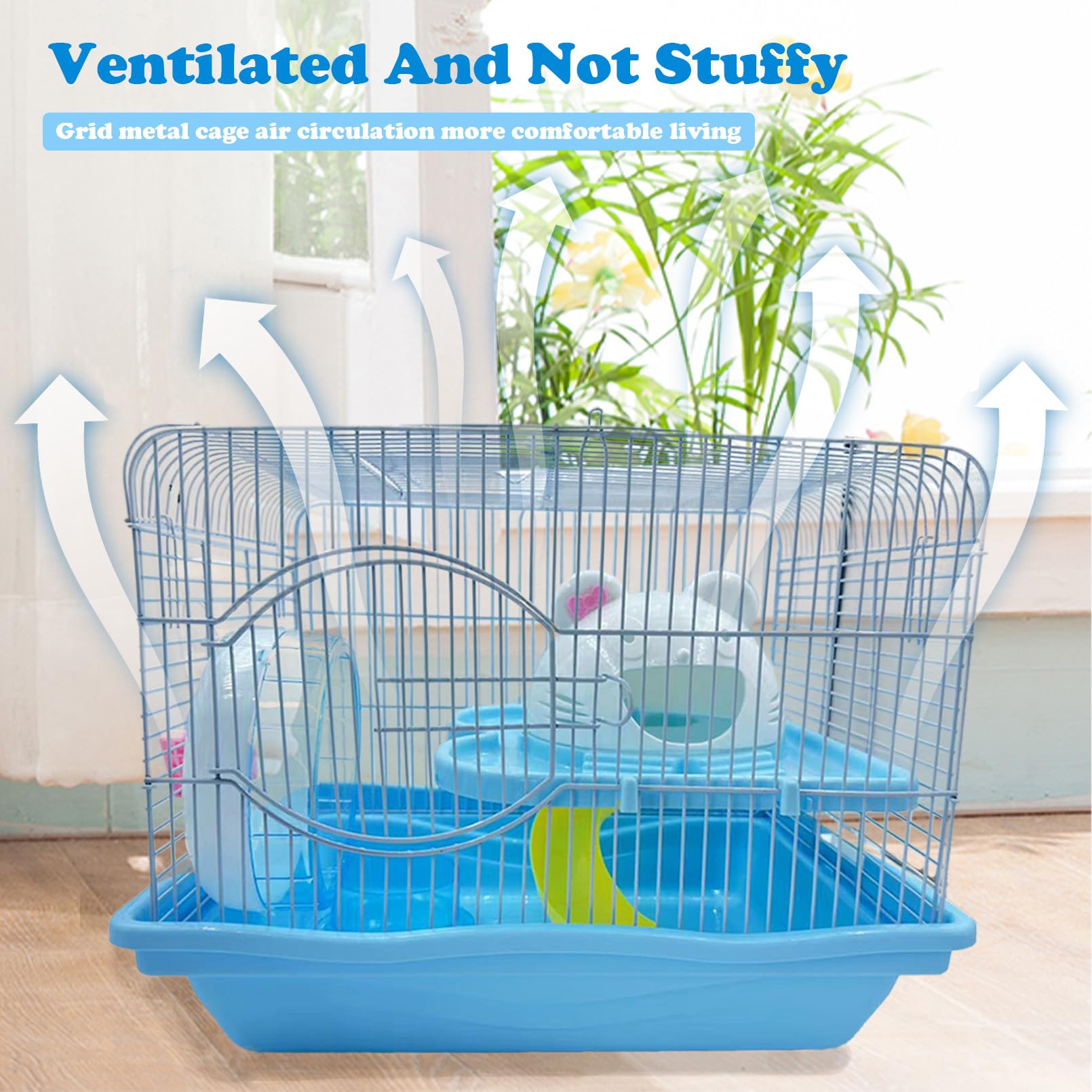 CUTE HAMSTER CAGE: Loft-style second floor, provides a spacious playground for your plush child, multiple hamsters can live together. Our hamster cage adopts a grid design to ensure air circulation is not stuffy. And you can also keep an eye on your child at any time