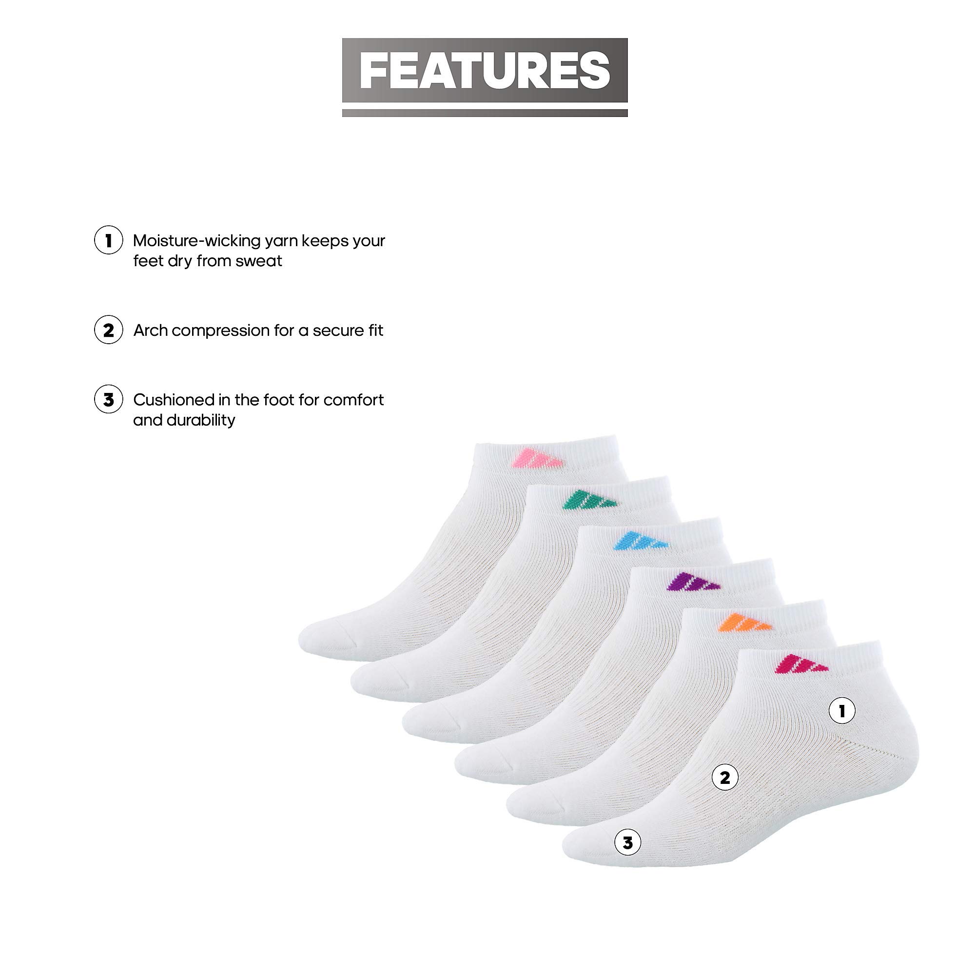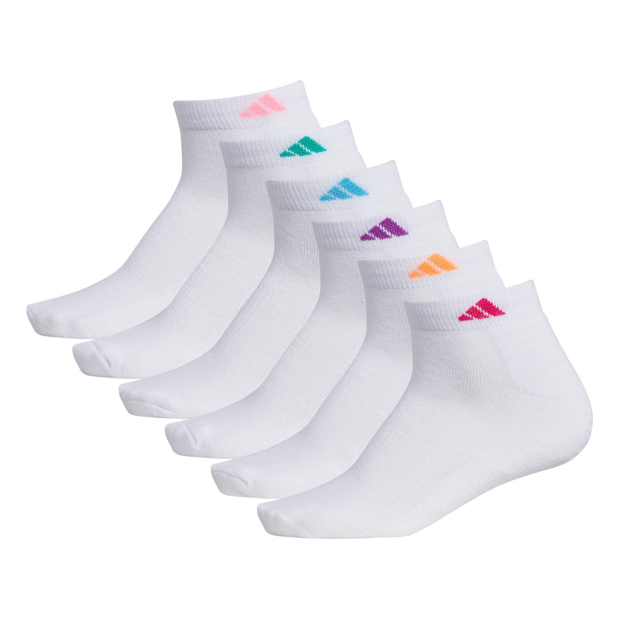 Description Quality, comfort, and durability is what you are looking for in your everyday sock and the adidas 6-Pack delivers on all of your needs. Now, with the addition of arch compression, this sock delivers a secure fit and gives you the best sock to handle your day to day.