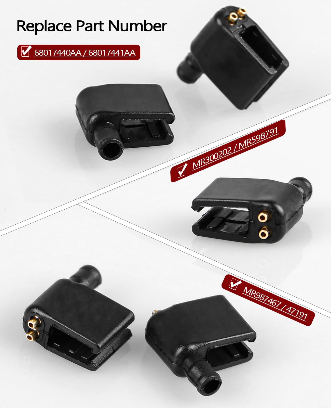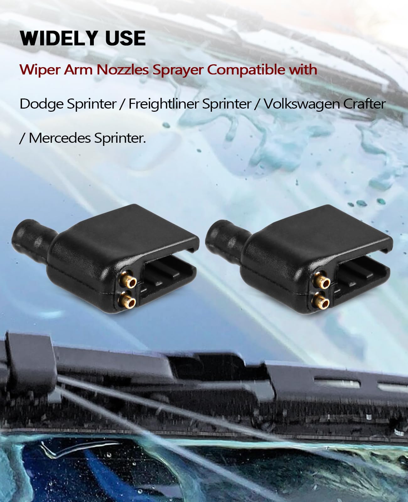 Widely Use - Wiper Arm Nozzles Sprayer Compatible with Dodge Sprinter / Freightliner Sprinter / Volkswagen Crafter / Mercedes Sprinter/ Peterbilt, Replace part number 68017440AA, 68017441AA, MR300202, MR598791, MR987467, 47191, 0008604547, 000860454764