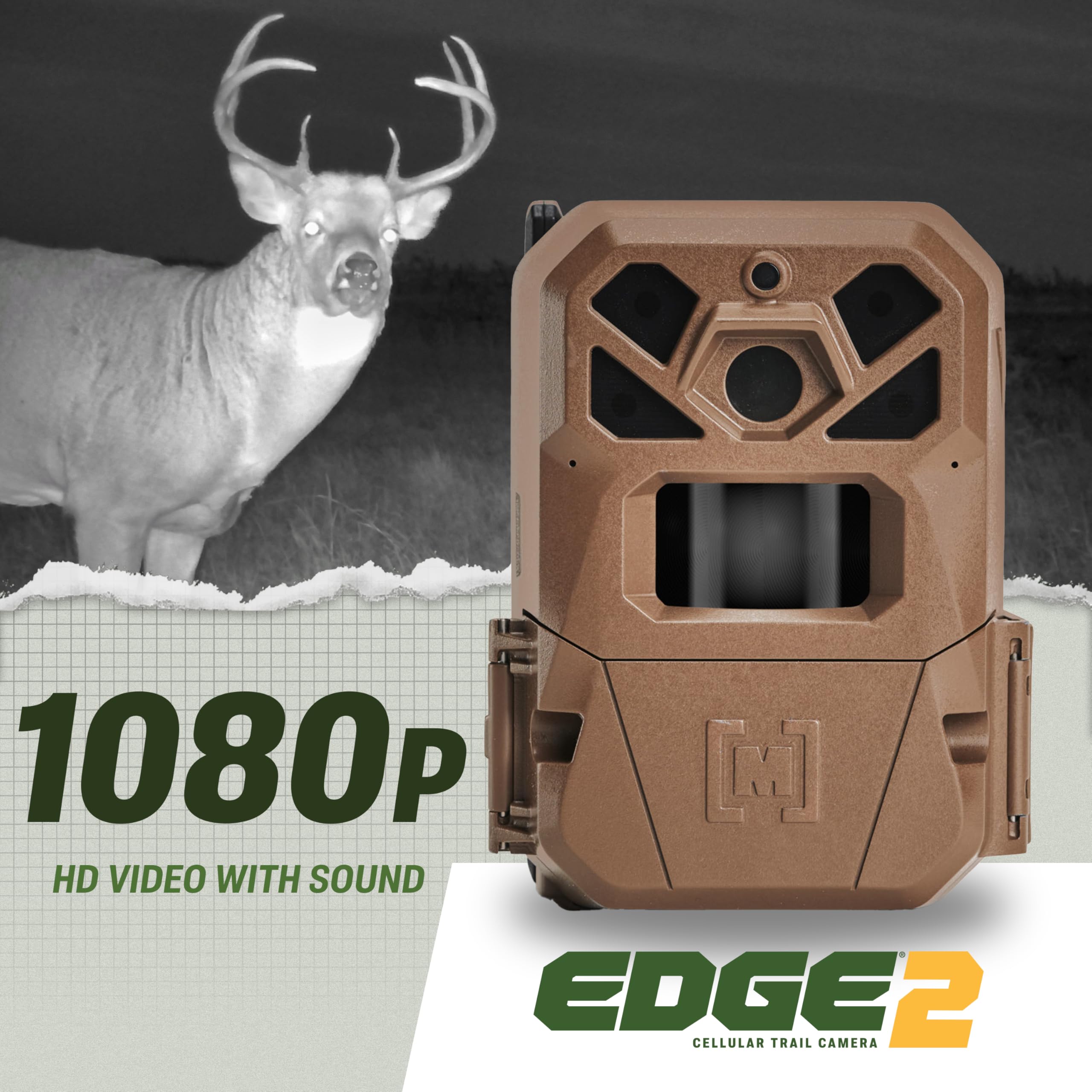 Introducing the EDGE 2 Cellular Trail Camera. Building on the legacy of EDGE, EDGE 2 brings you a faster trigger, longer detection range, and higher quality photos and videos, plus On Demand. ADVANCED FEATURES On Demand: Remotely trigger a photo or video, and update settings at any time, directly from the Moultrie Mobile app DETECTION Faster Trigger Speed: With a 0.40-second trigger speed, you won’t miss any of the action. Full HD Photos and Video: Capture 36MP images and 1080p videos with sound, delivering crystal-clear quality for beautiful outdoor shots. Detection Range: The EDGE 2 boasts a 100-foot detection and flash range for long-range scouting. Low-Glow Flash: Ensures that nighttime shots are crisp and clear, without alerting game or intruders. SET UP Auto-Connect: Nationwide Coverage on all 4 major network. EDGE 2 automatically connects to the strongest network Built-In Memory: Photos and videos are stored on the camera; No SD card required. Experience the next generation of EDGE.