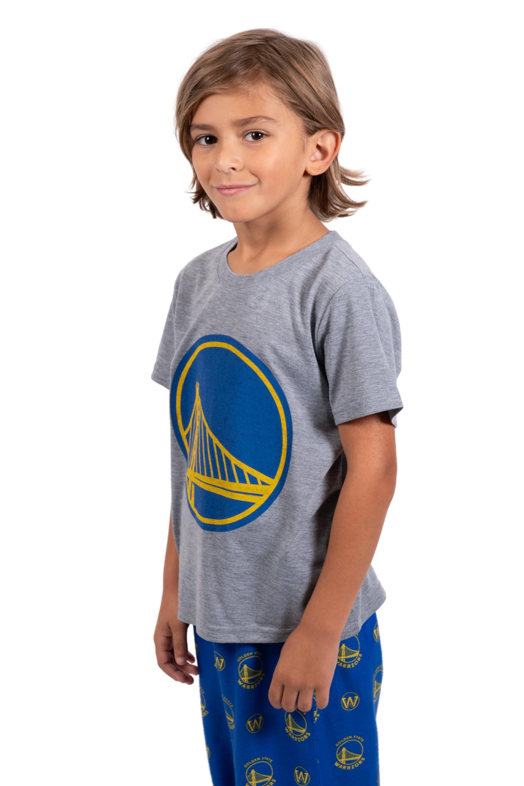 TEAM PRIDE: Kids can show their NBA team pride from top to bottom with this set. The bottoms have an all-over print with the team's primary and secondary logos. The top has one large screen print of the primary logo across the front.