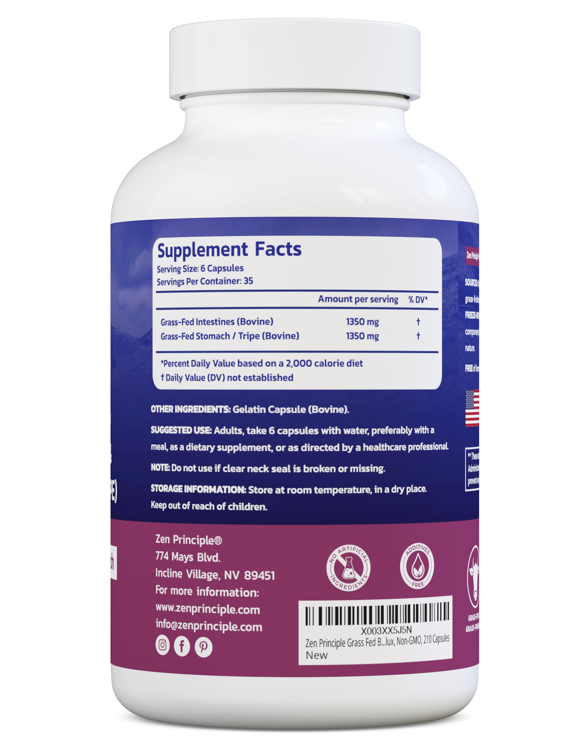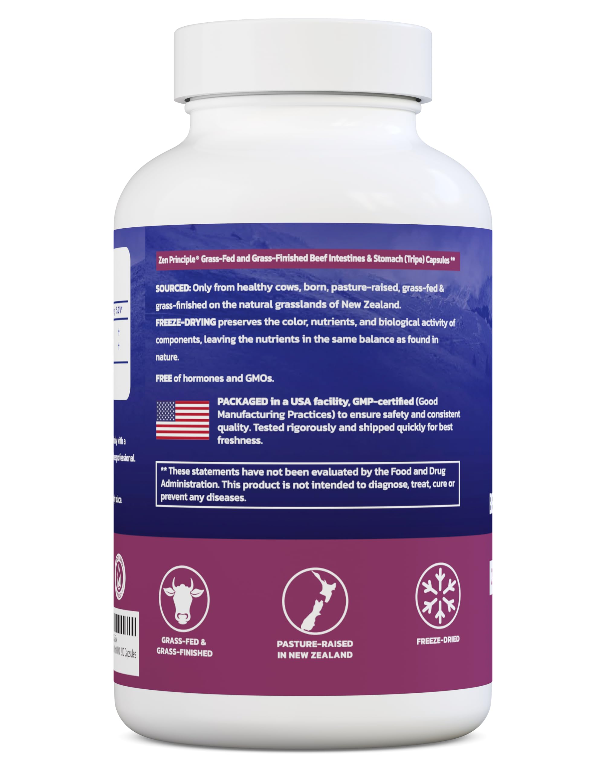 Sourced from New Zealand Grass-Raised Beef: Our supplements are derived from 100% grass-fed cows, raised on the lush, hormone-free pastures of New Zealand. Free from GMOs, fillers, or flow agents, each batch undergoes rigorous third-party testing to ensure the utmost purity and quality, before being packaged in the USA.