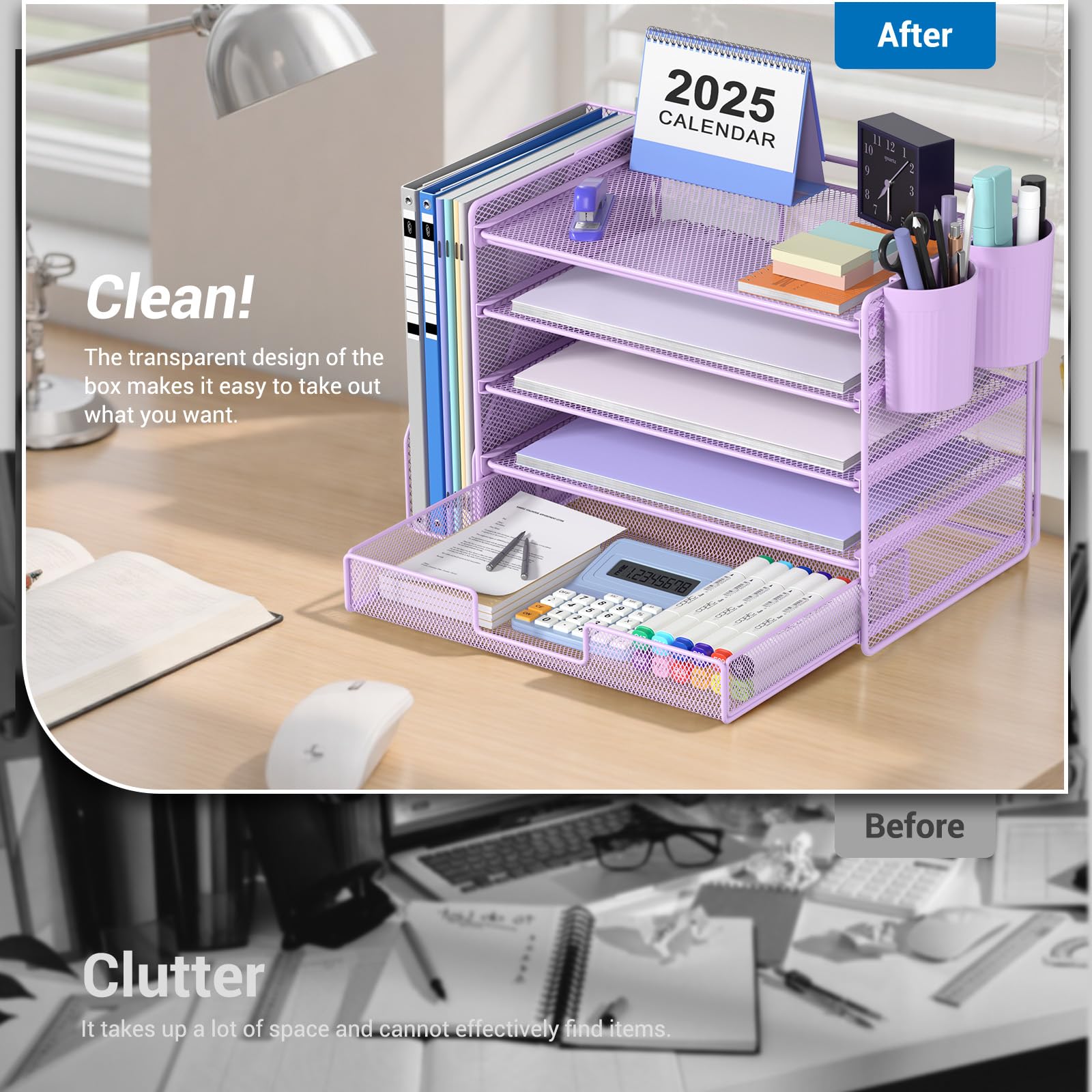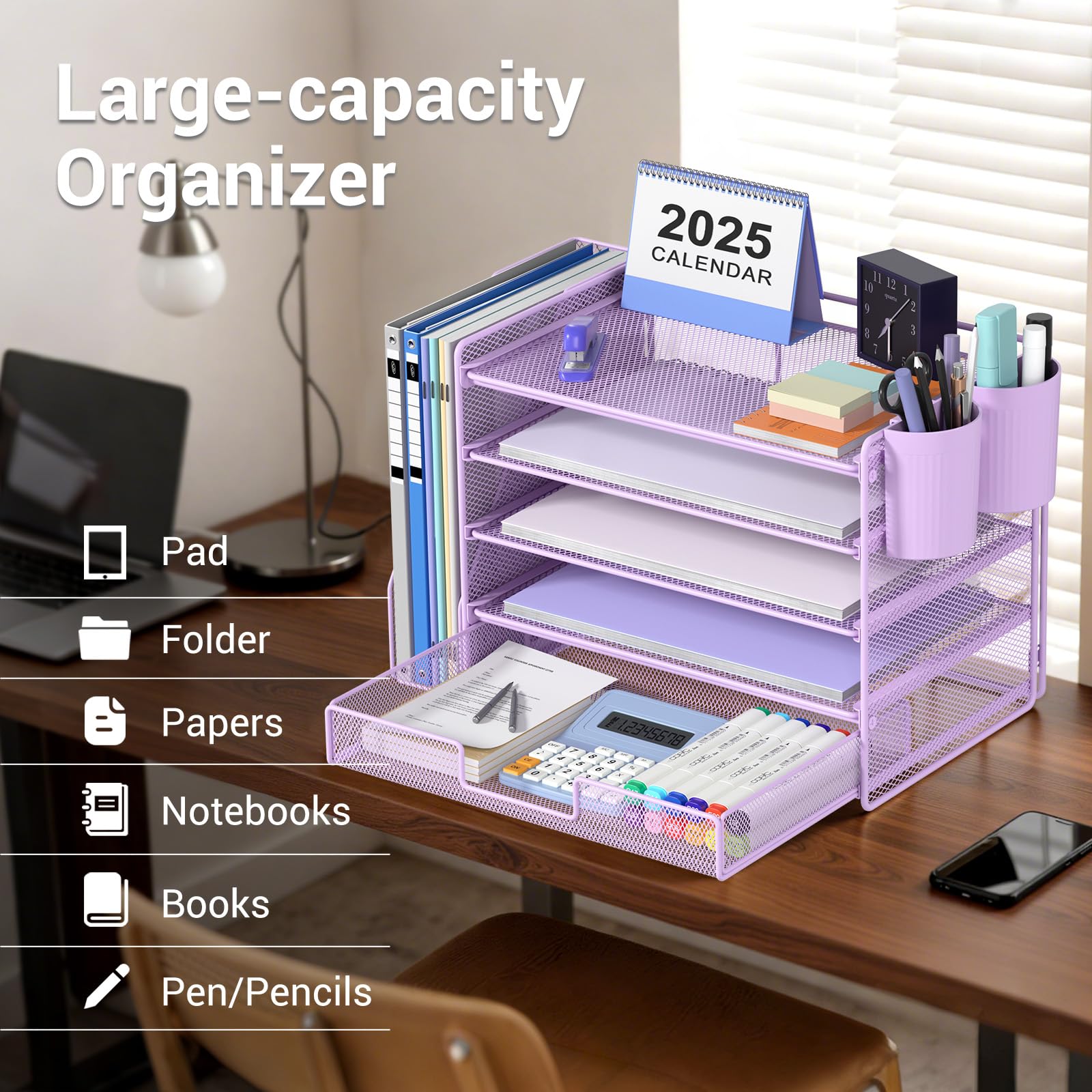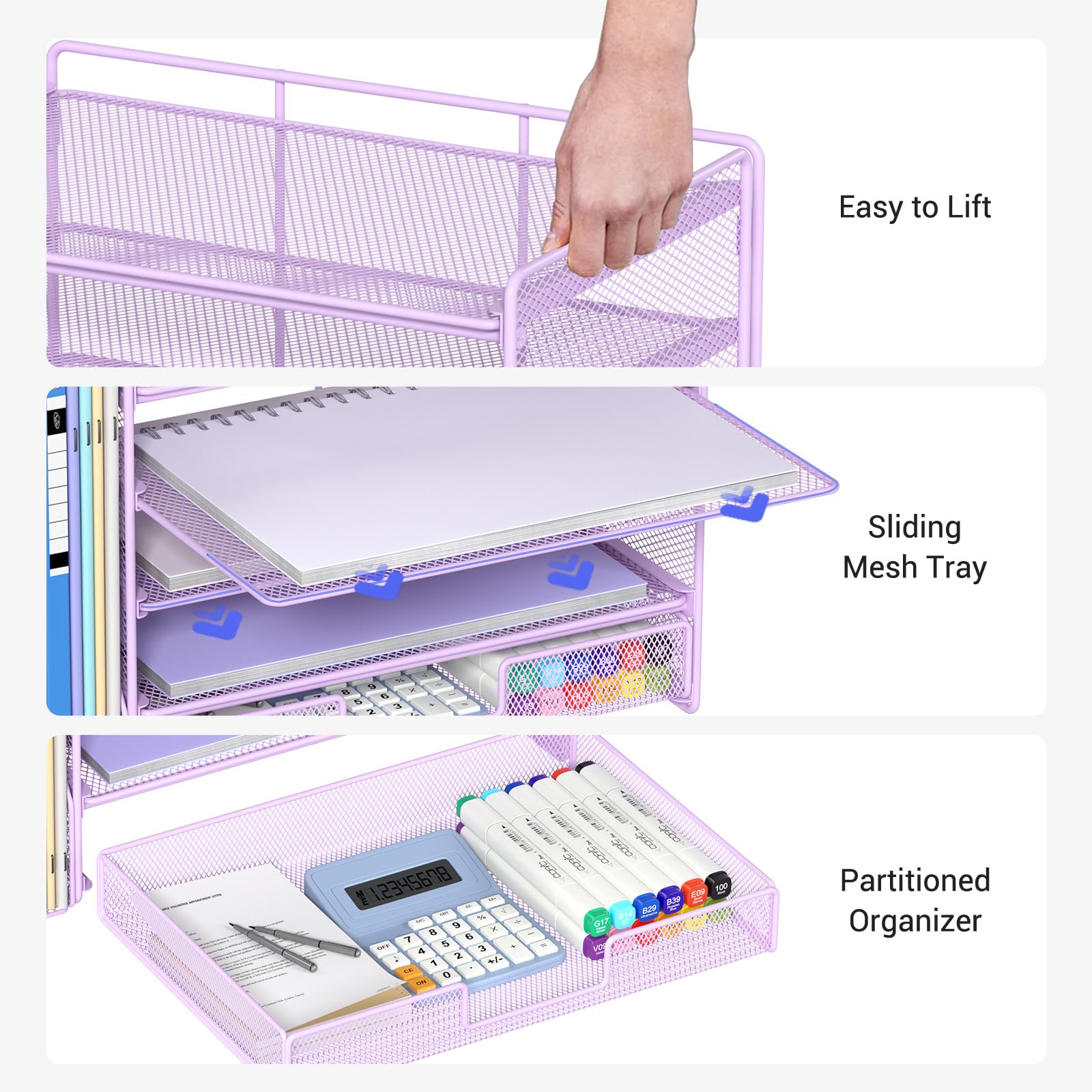 đăPremium QualityăCrafted from high-quality industrial-strength steel wire mesh and reinforced with a solid steel frame, our desk file organizer is built to last. You can trust that it will withstand the test of time and keep your workspace organized for years to come