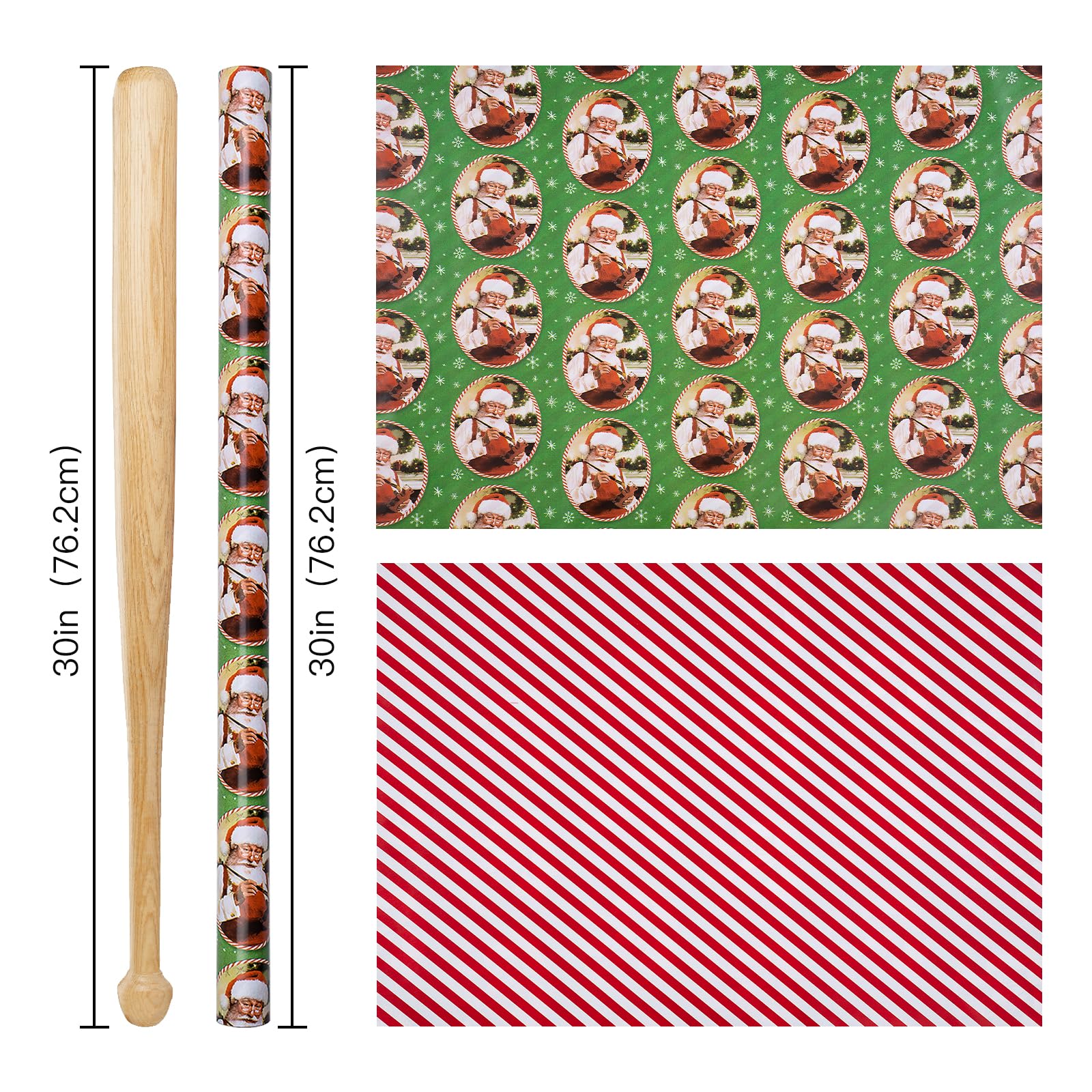 Bring timeless cheer to your holiday gifts with the reversible Christmas Wrapping Paper Roll. This mini roll showcases two festive styles in one, a vintage-inspired santa claus design on a green background dotted with stars, and a vibrant red and white candy cane stripe pattern on the reverse. Sized at 30 inches x 32.8 feet, it's perfect for wrapping small to large-sized packages such as books, toys, clothing or baked goods. Crafted from sturdy paper, this wrap is tear-resistant, easy to fold, and designed to hold its shape beautifully. Whether you're wrapping gifts for kids, family members, or holiday parties, this double-sided design allows you to choose between nostalgic charm and playful flair.