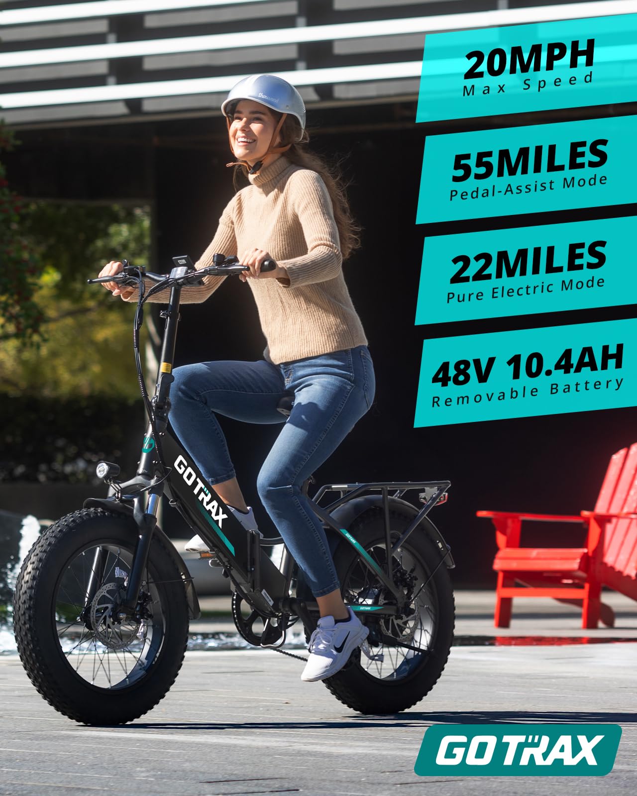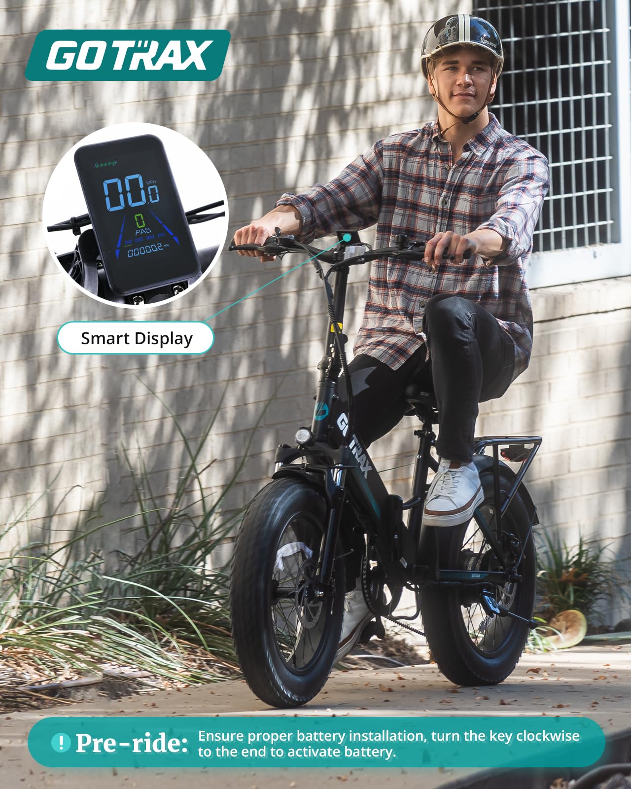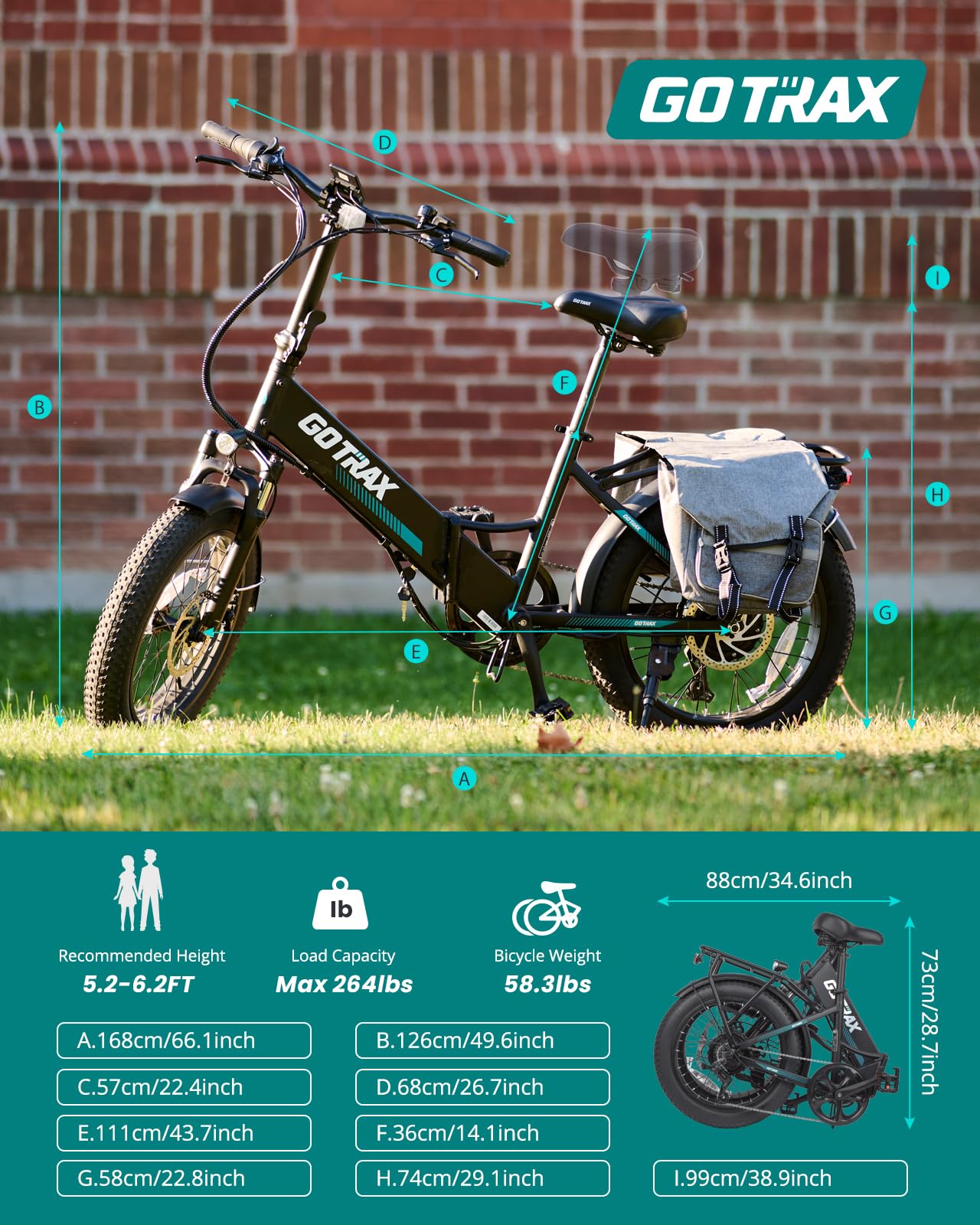【Foldable and Portable Design】This GOTRAX adult electric bike folds easily, reducing its size by over half for efficient storage. Fit it in your car trunk or take it on the subway for a hassle-free commute. Ideal for exhilarating outdoor adventures as well. (Folded size: 34.6*24*28.7inch)