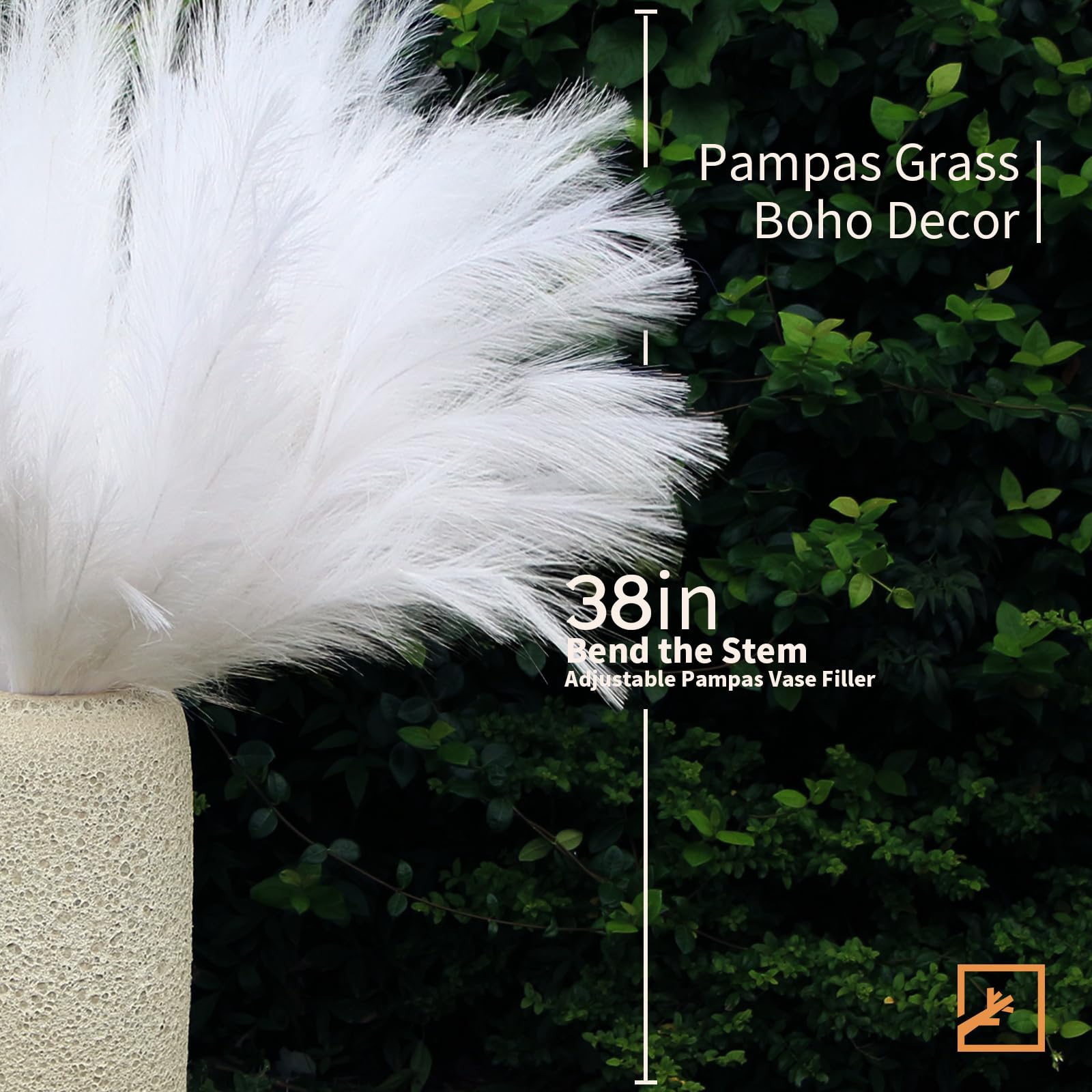 [Fluffy and Durable]: Each stem is full and elegant. The light and feathery plumes gives you the beauty of lush pampas. Simply fluff it up and put it in a vase to add some charm to your home decor. The pampas grass decor requires no maintenance or watering.