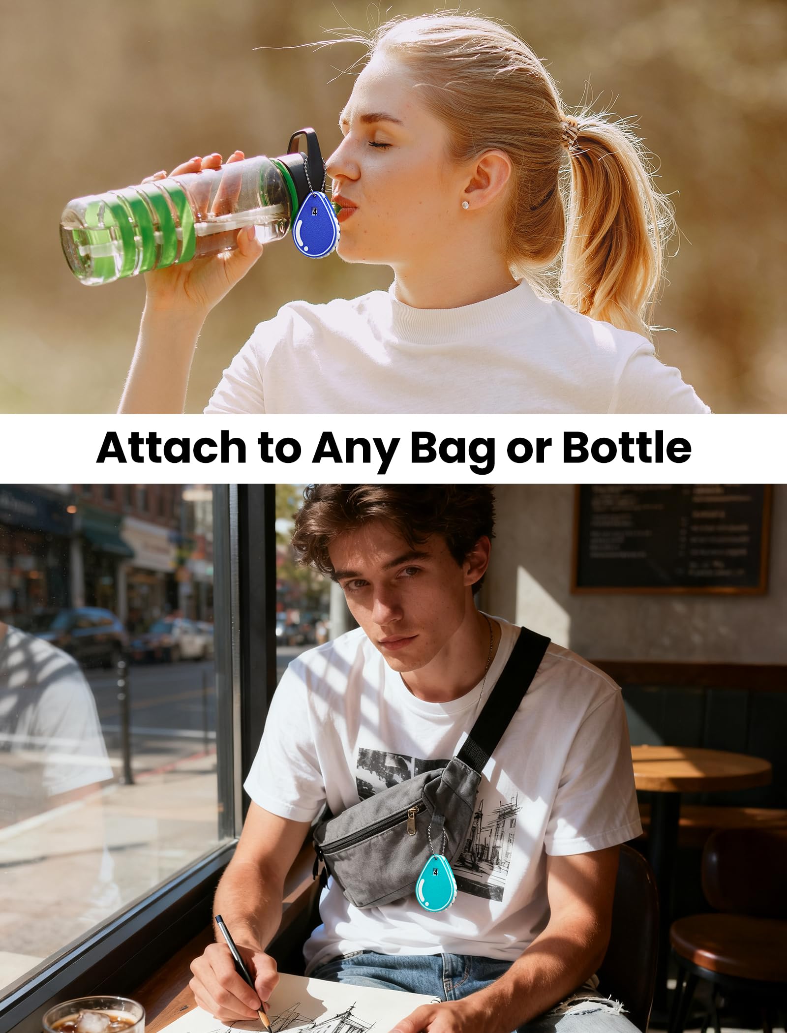 Lightweight and Portable, Multi-functional Use: Small and lightweight, it can be hung not only on your water bottle but also on keychains, backpacks, and more. It's an innovative, practical tool that combines hydration reminders, stress relief, and a touch of decor.