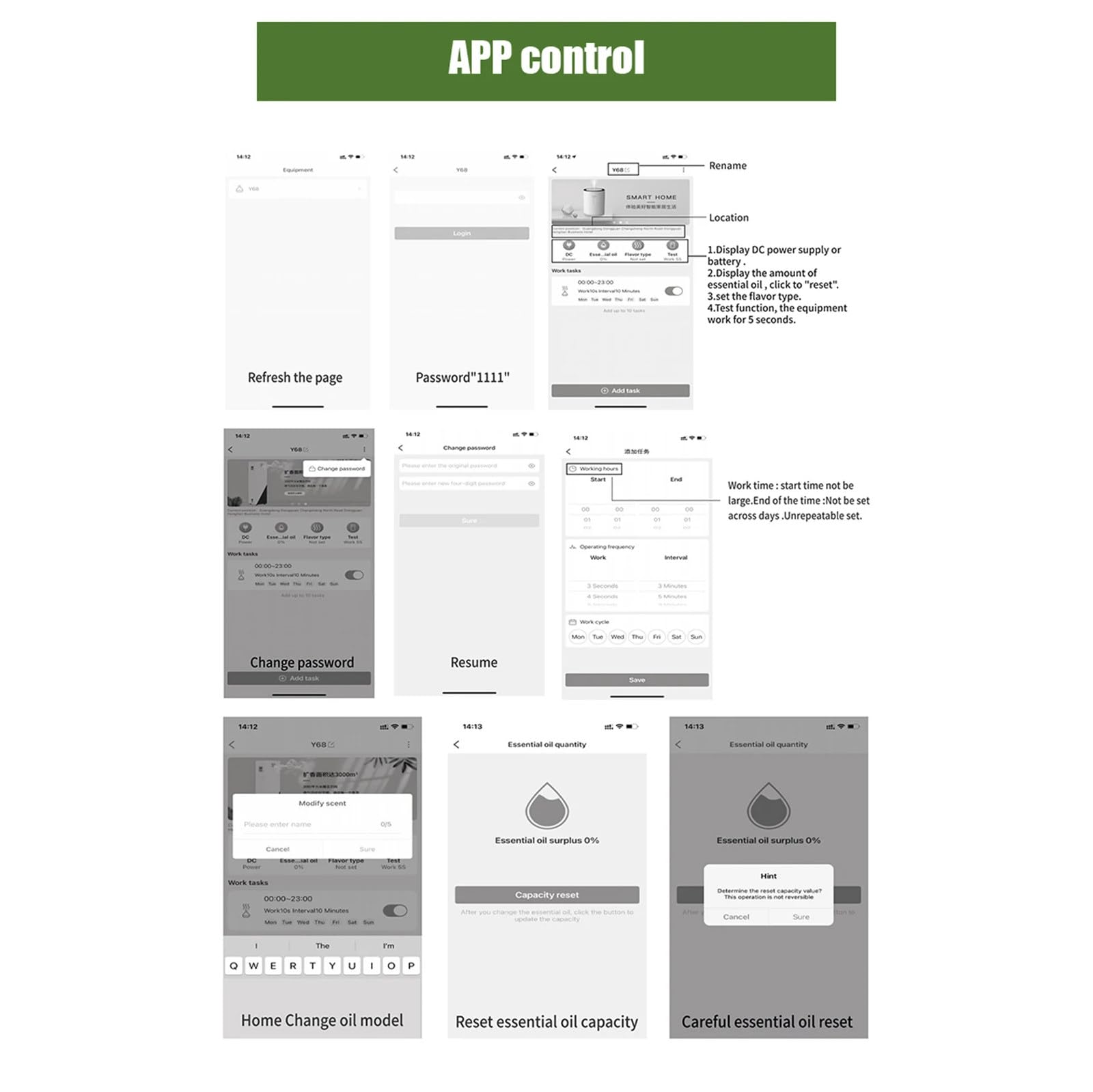 *APP CONTROL & TIMER FUNCTION: Bluetooth connection, mobile app remote control, turn on the fragrance device, set it as you like, and add 10 periods of time and fragrance concentration.