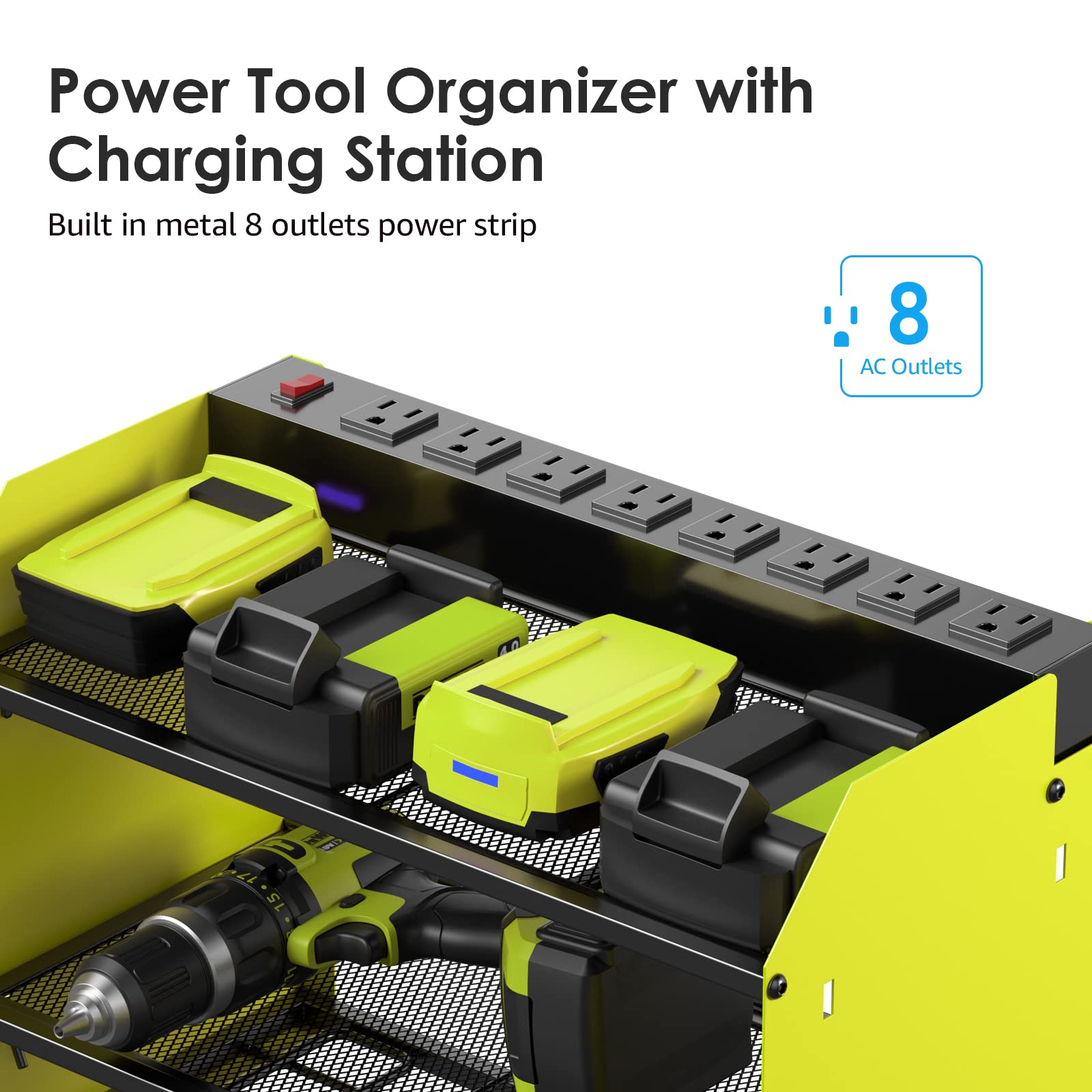 Power tool organizer with charging station, come with 8 outlets. If you have a lot of rechargeable tools, you can charge everything right in the rack and avoid searching for sockets. 6ft power cord included.