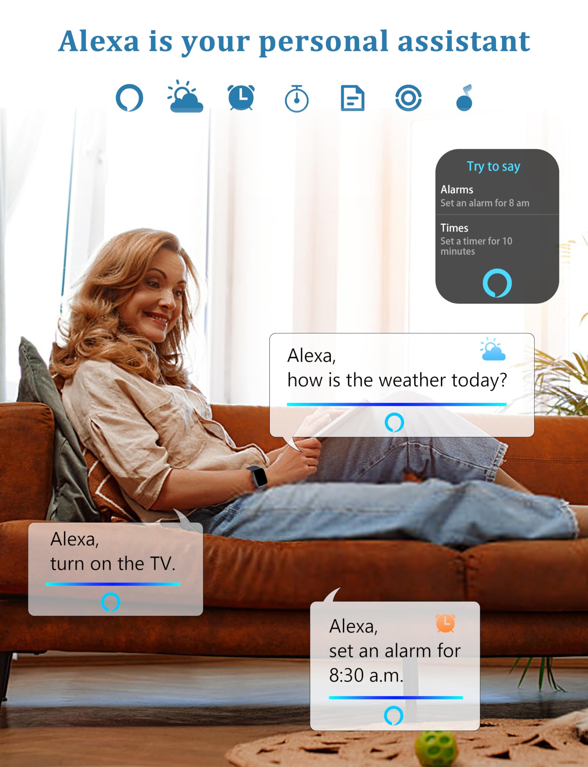 Intuitive Alexa Watch: You can unlock the full potential of Alexa right on your wrist. This feature allows you to utilize voice control for a range of tasks with ease. Whether you wake Alexa by pressing and holding the power button or tapping the icon, you can simply speak into your watch to ask questions, set alarms, control music playback, check the weather, and manage Alexa-enabled smart devices. This seamless integration makes your daily routine more efficient and convenient.