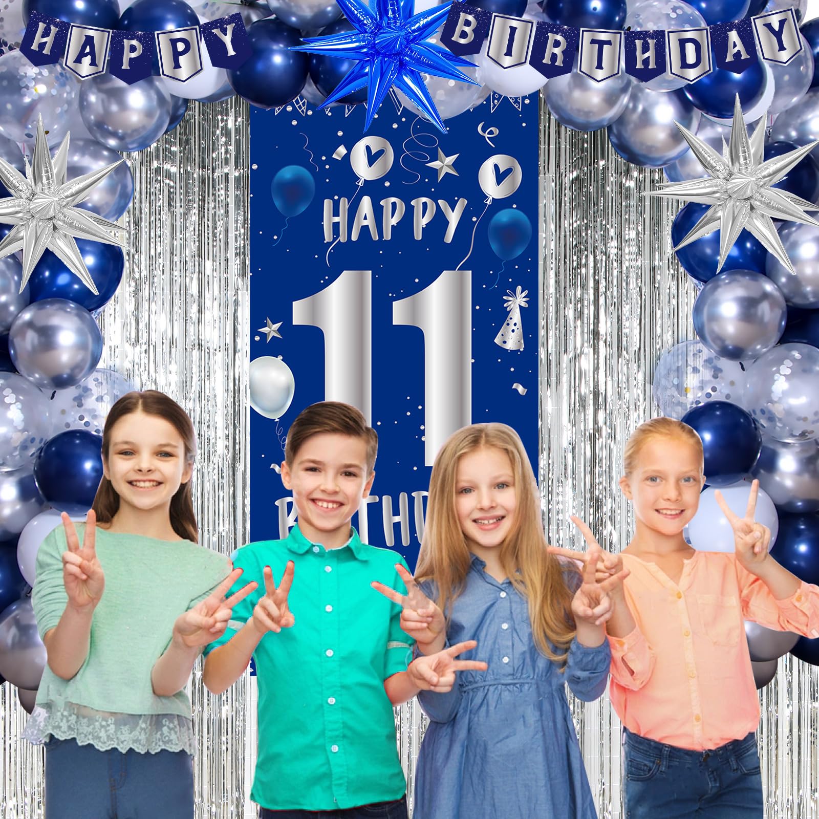 About Quality - The blue and silver balloons are made of thick latex, not easy to burst. The 11th birthday door banner can be applied many times, easy to fold and carry for indoor or outdoor decoration. The shiny foil fringe backdrop will make your 11th party more lively