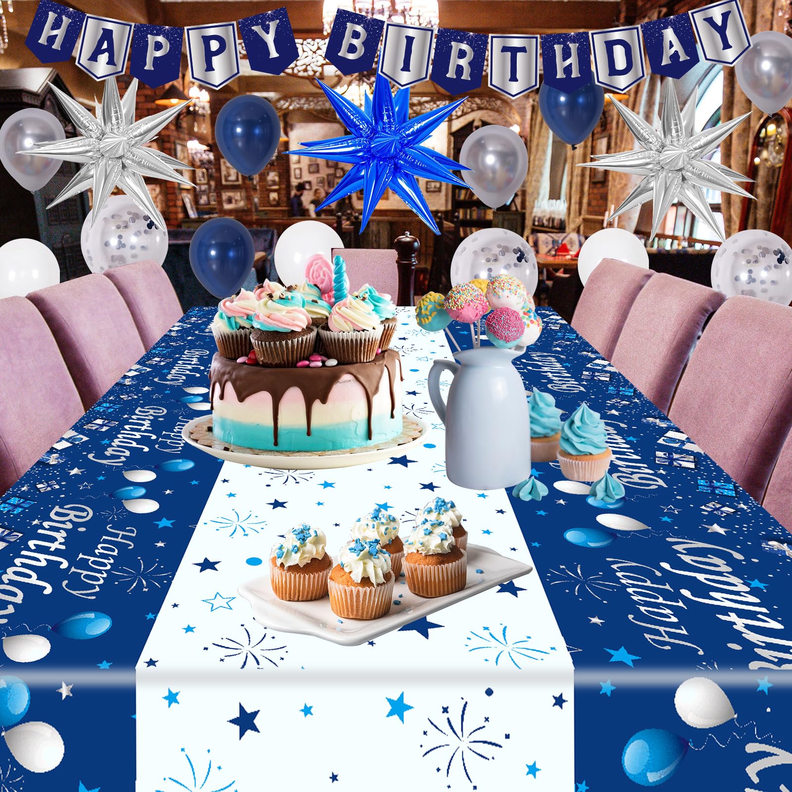 Come with Tablecloth - The happy birthday tablecloth is made of waterproof PVC, you don’t have to worry about the oil or juice dripping on the table, easy to clean.