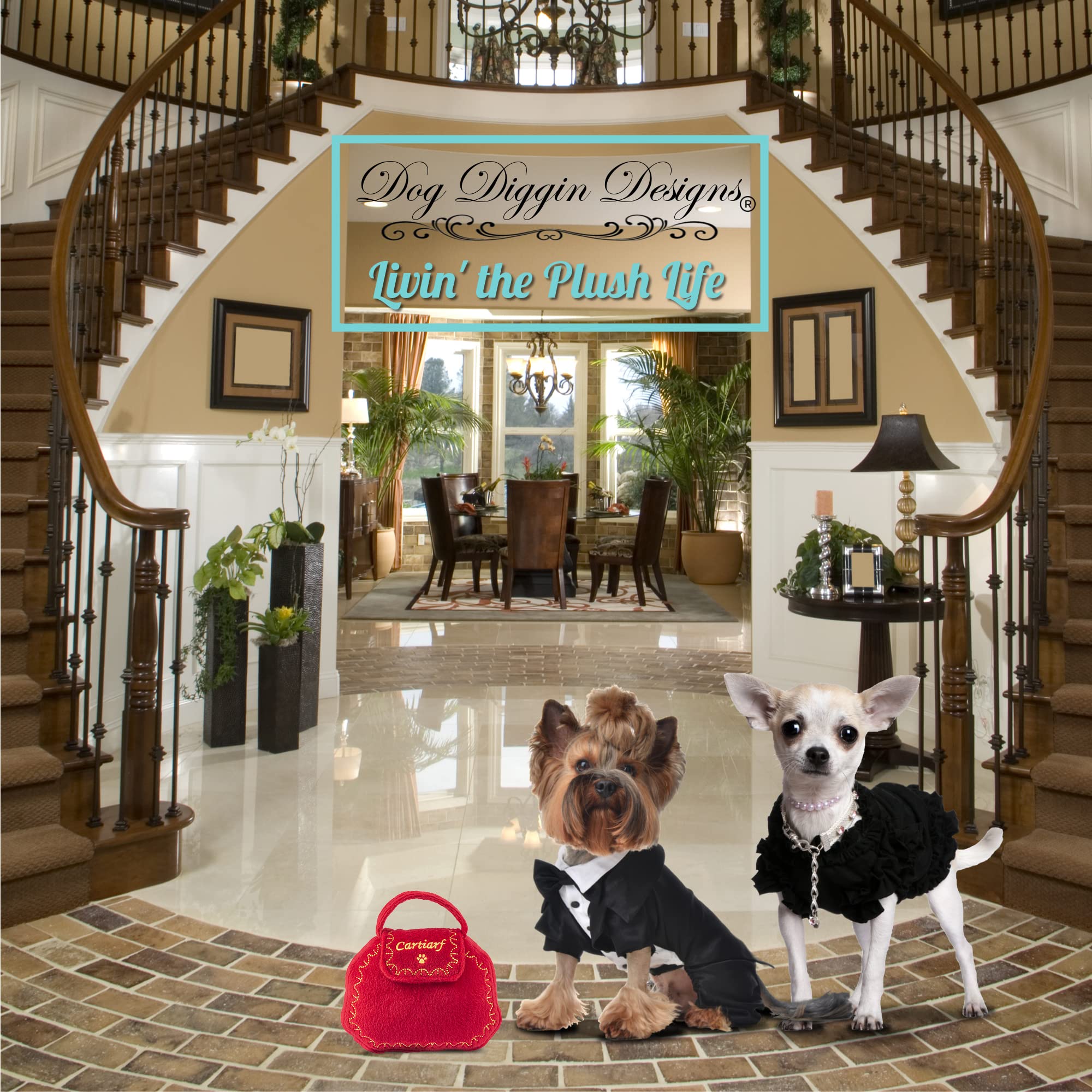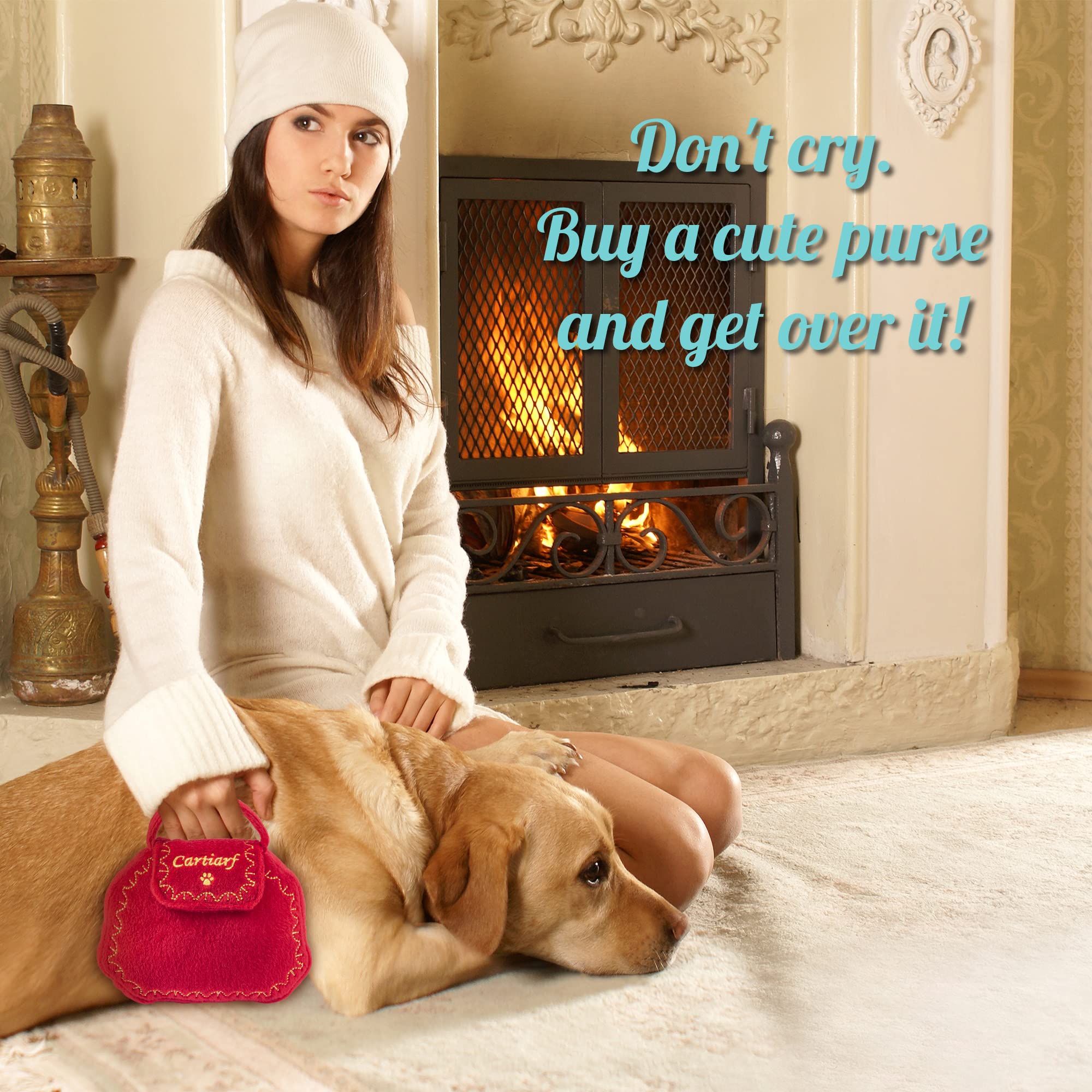 Dog Diggin Designs Cartiarf Plush Dog Toy Purse | Luxury-Inspired Parody Designer Handbag with Squeaker, Soft Plush Fashion Dog Toy – Haute Couture Purses & Handbags