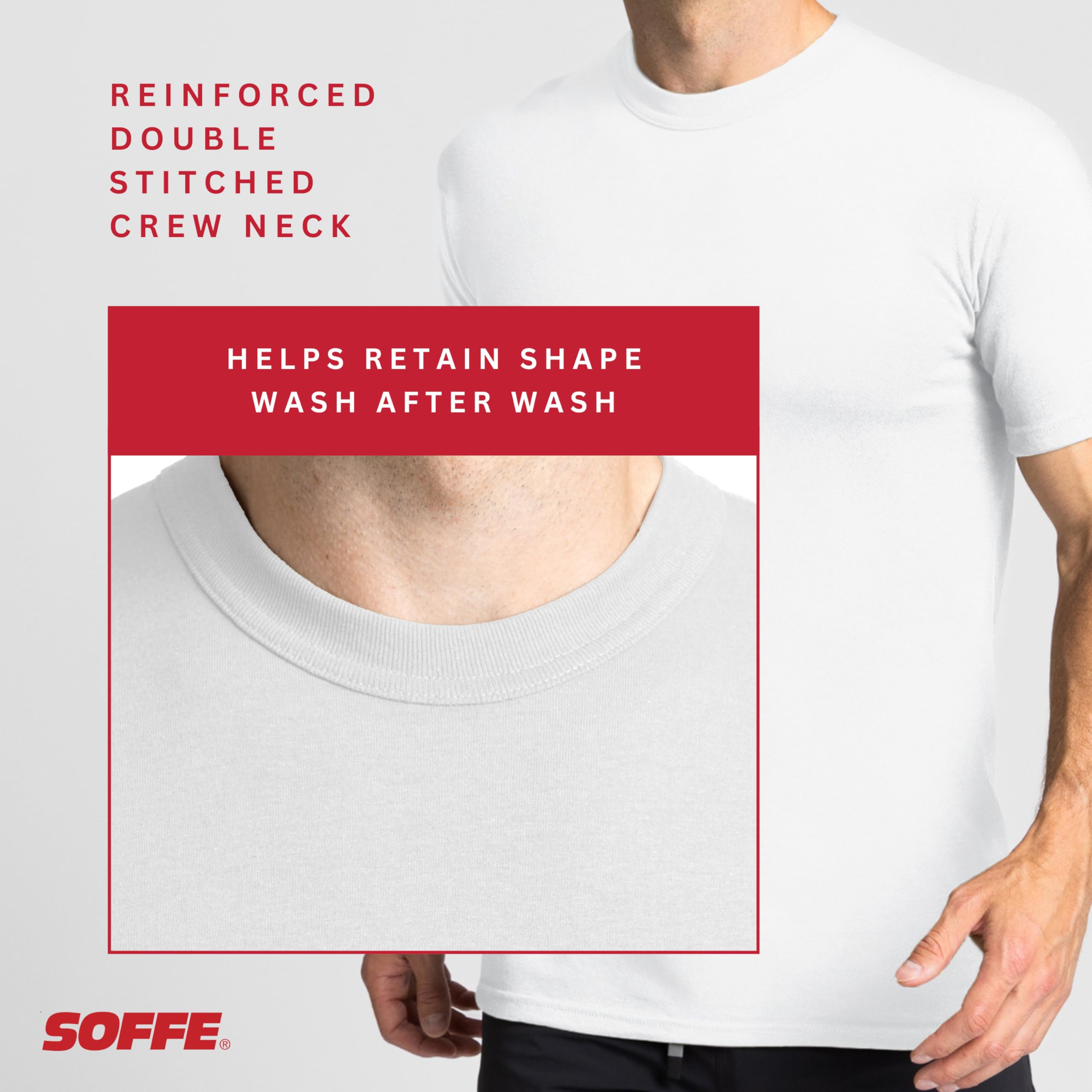 Description Soffe creates activewear that inspires and empowers all walks of life - from military to athletics and everything in between. Built on a proud legacy, our iconic designs deliver quality products that make you look and feel your best and are accessible to everybody. The cotton/polyester 50/50 tee features our famous reinforced double-stitched neck to retain shape. It’s made of a soft jersey blend but strong enough to withstand the tough and elite standards of the U.S. Military. Sold in packs of three.
