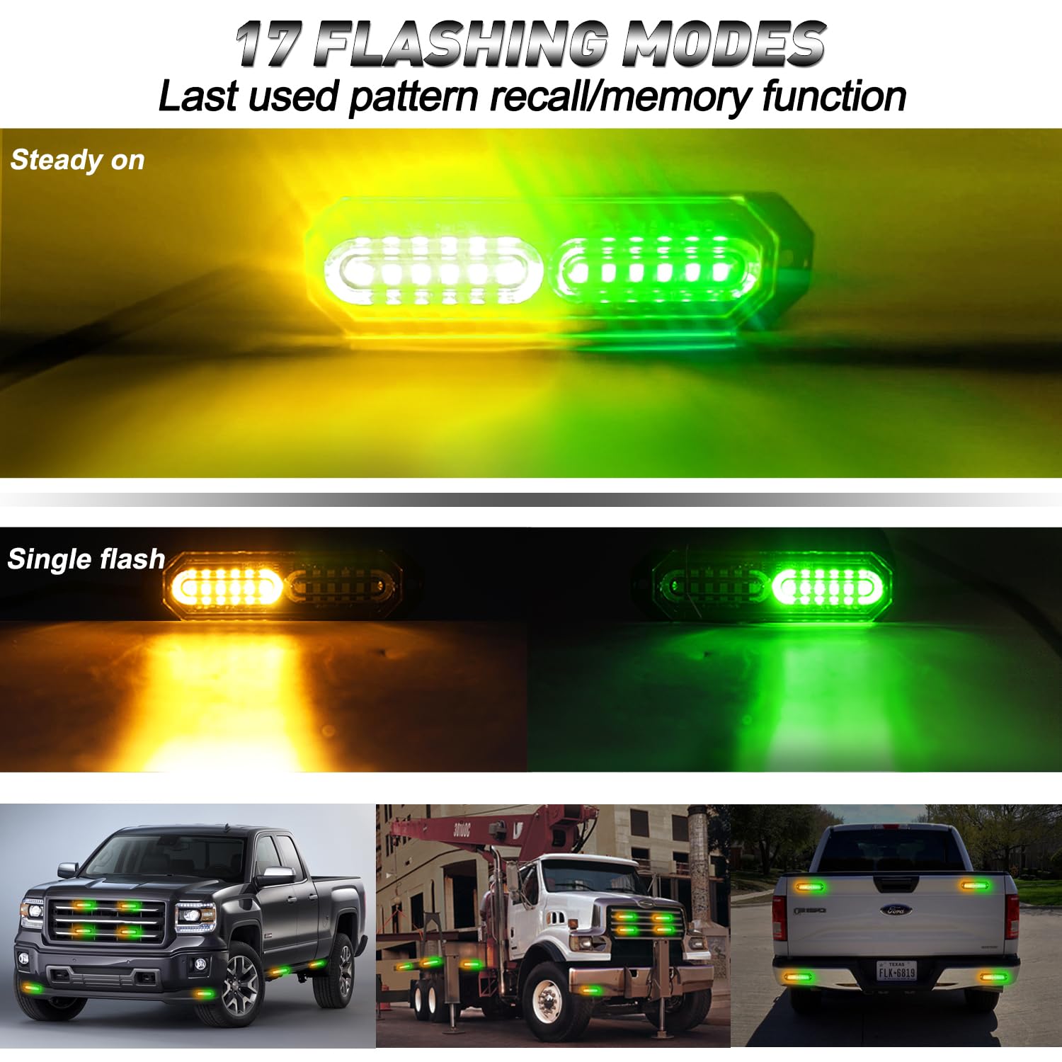 【SUPER VISIBILITY】ASPL 8Pcs 12LED Surface Mount Strobe Lights, each light has a total of 12 high-intensity Led chips. Use aluminum alloy housing + ABS magnifying lens for maximum brightness to ensure more effective warning to other vehicles. These strobe lights can be seen from hundreds of feet away.