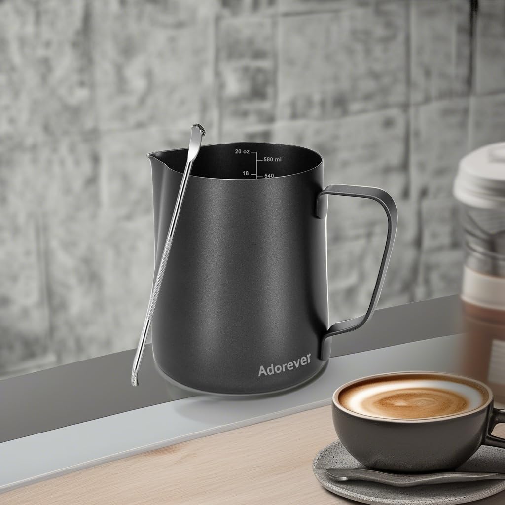 Perfect Combination Of Milk Jugs And Latte Art Pen: The milk frother jug can be used in different ways: froth or steam milk for lattes; measure liquids; serve milk or cream. Featured with a latte art pen which can shape kinds of beautiful coffee pattern. Perfect for making frothing or steaming milk for espresso, cappuccino or hot chocolate. Be your own barista in home and office.
