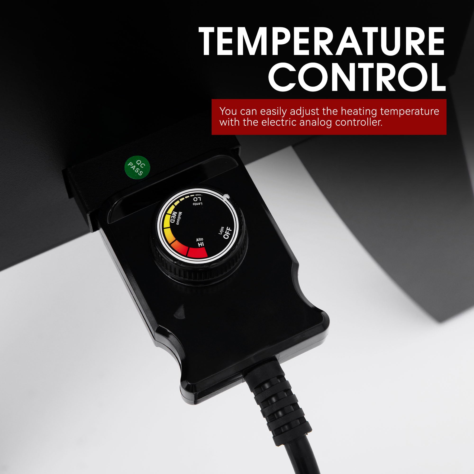 Temperature Control System: A built-in thermometer and an adjustable electric analog controller offer a quick and precise check and adjustment of internal temperature