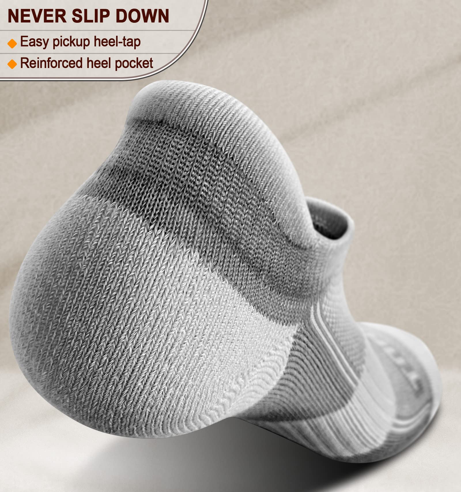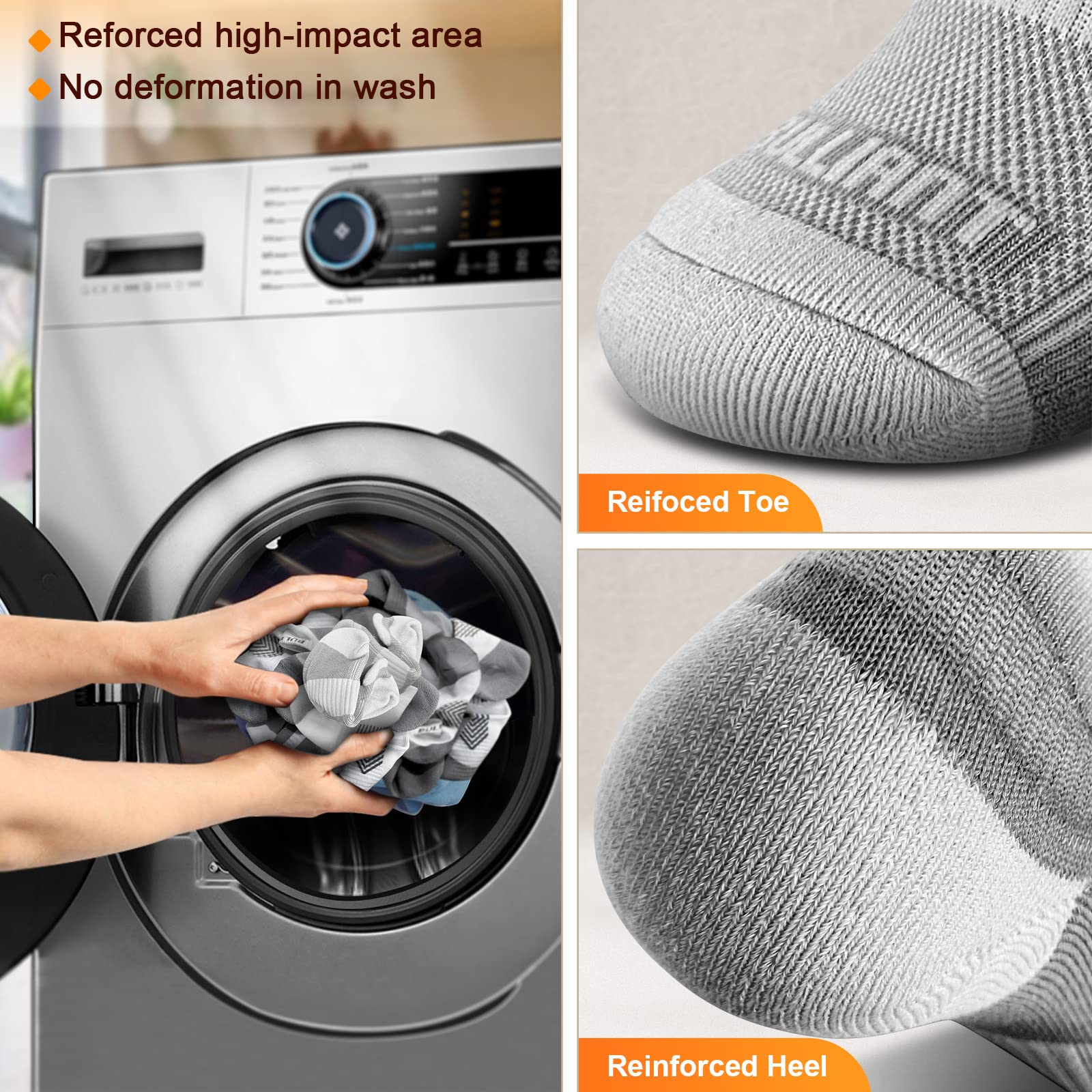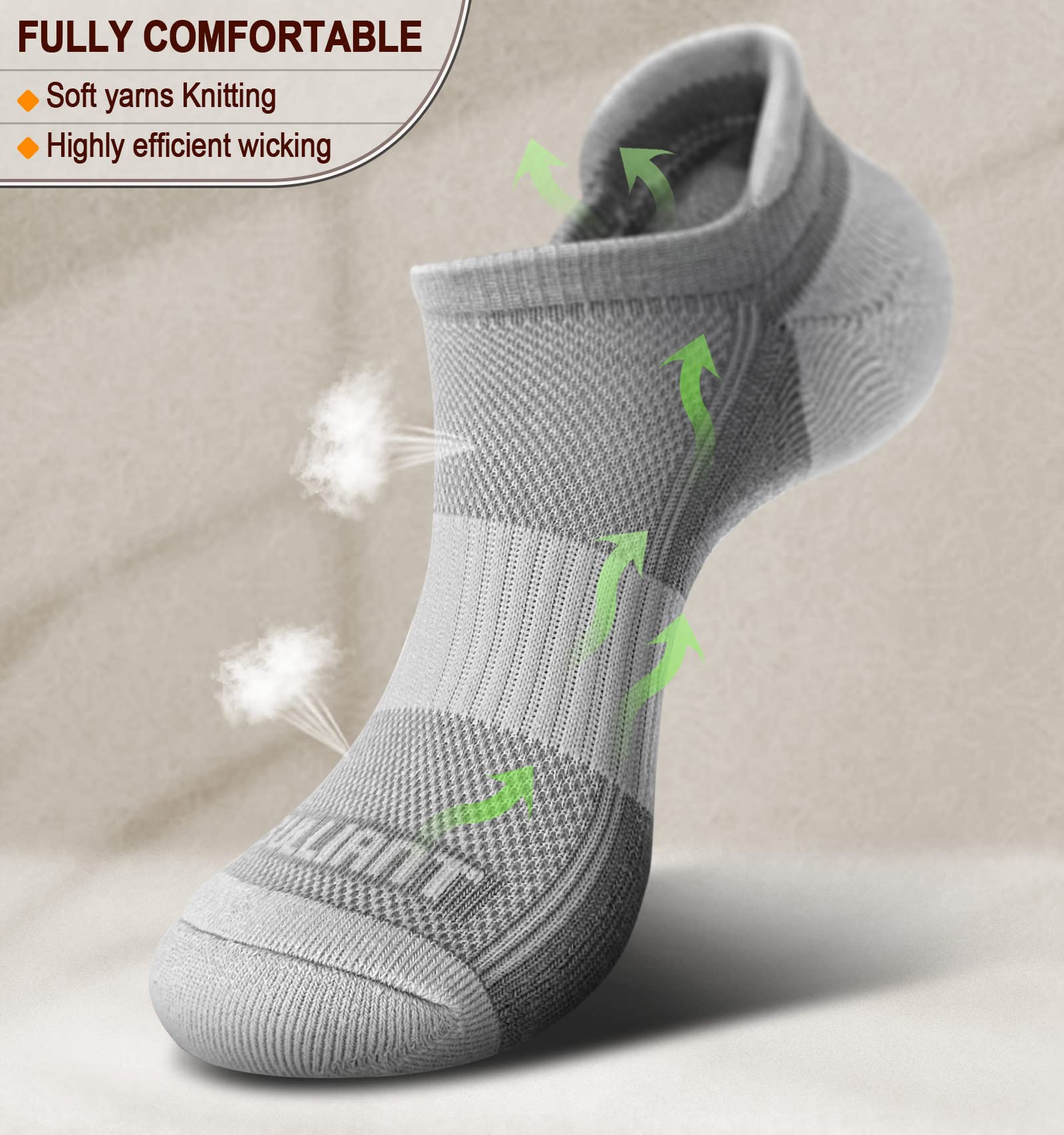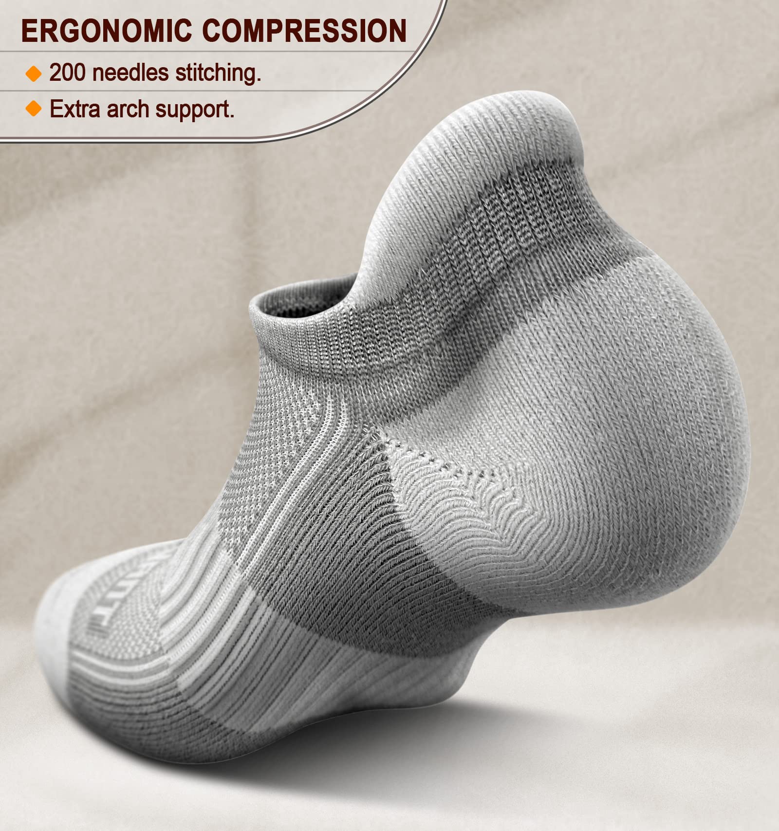 Durable--The 200 needle-count fabric knitting all around,high-density cushion in full sole and double knitting in all the joint positions,all these details proivdes a superior reliability and durability to this athletic socks to against any problem of tearing off or wearing out;