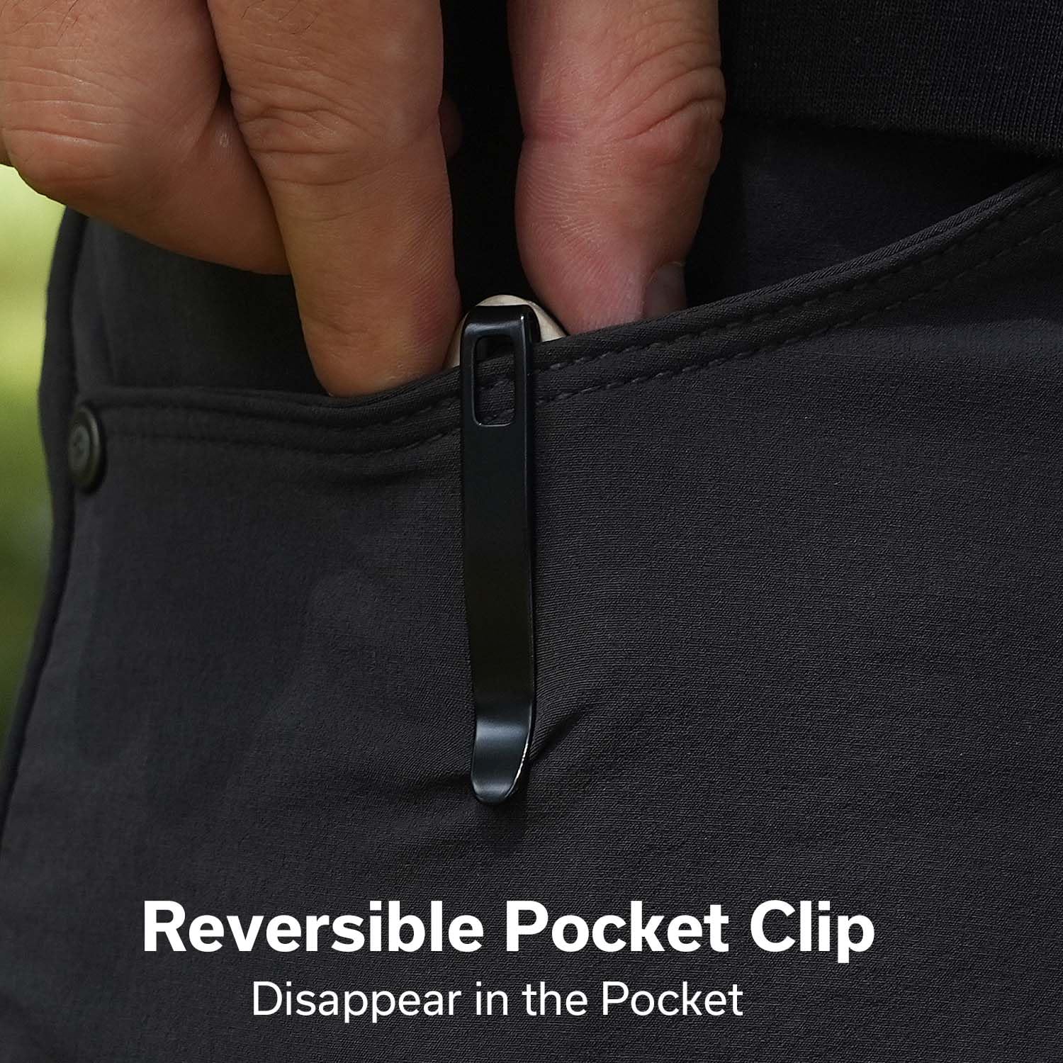Reversible Pocket Clip: It allows the knife to sit low in your pocket, riding discreetly and securely until needed